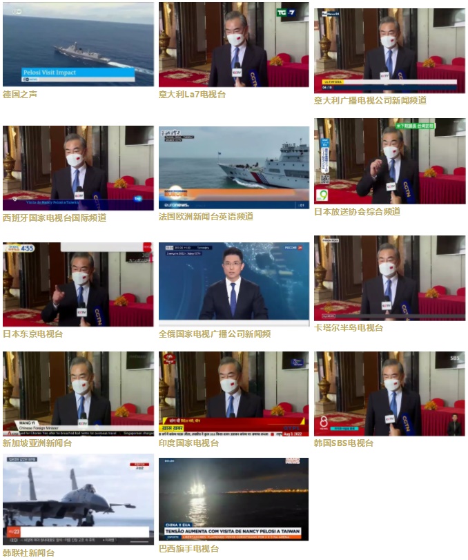 總臺亞非中心制作的外交部、全國人大常委會、中共中央臺灣工作辦公室、全國政協(xié)外事委員會、國防部、東部戰(zhàn)區(qū)、王毅國務(wù)委員兼外長發(fā)表的相關(guān)聲明和談話得到了日本、韓國、印度、土耳其、印尼、伊朗等對象國250多家主流媒體轉(zhuǎn)載近5000篇次。