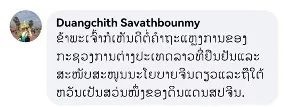 老撾黨中央機(jī)關(guān)報(bào)前總編輯、社長端吉·薩瓦本彌(Duangchith Savathbounmy)留言:“認(rèn)同我的祖國對臺灣問題的表態(tài),支持一個(gè)中國原則,臺灣是中國不可分割的一部分?!?/p>
