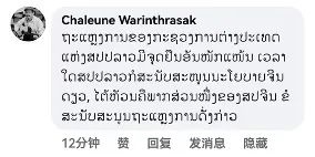 老撾新聞文化旅游部前副部長扎倫·瓦林塔薩(Chaleune Warinthrasak)留言:“老撾外交部的聲明及時(shí)而嚴(yán)正,任何時(shí)候我們只支持一個(gè)中國原則,臺灣是中國不可分割的一部分?!?/p>