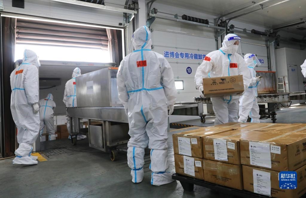10月20日上午9點(diǎn),第五屆中國(guó)國(guó)際進(jìn)口博覽會(huì)的第一批進(jìn)口冷鏈?zhǔn)称氛蛊繁贿\(yùn)入總倉(cāng)。在接下來(lái)的10天內(nèi),預(yù)計(jì)約100個(gè)全球參展商、3000箱冷鏈?zhǔn)称氛蛊?,將在總倉(cāng)集中完成“最小包裝”消毒和核酸檢測(cè)。