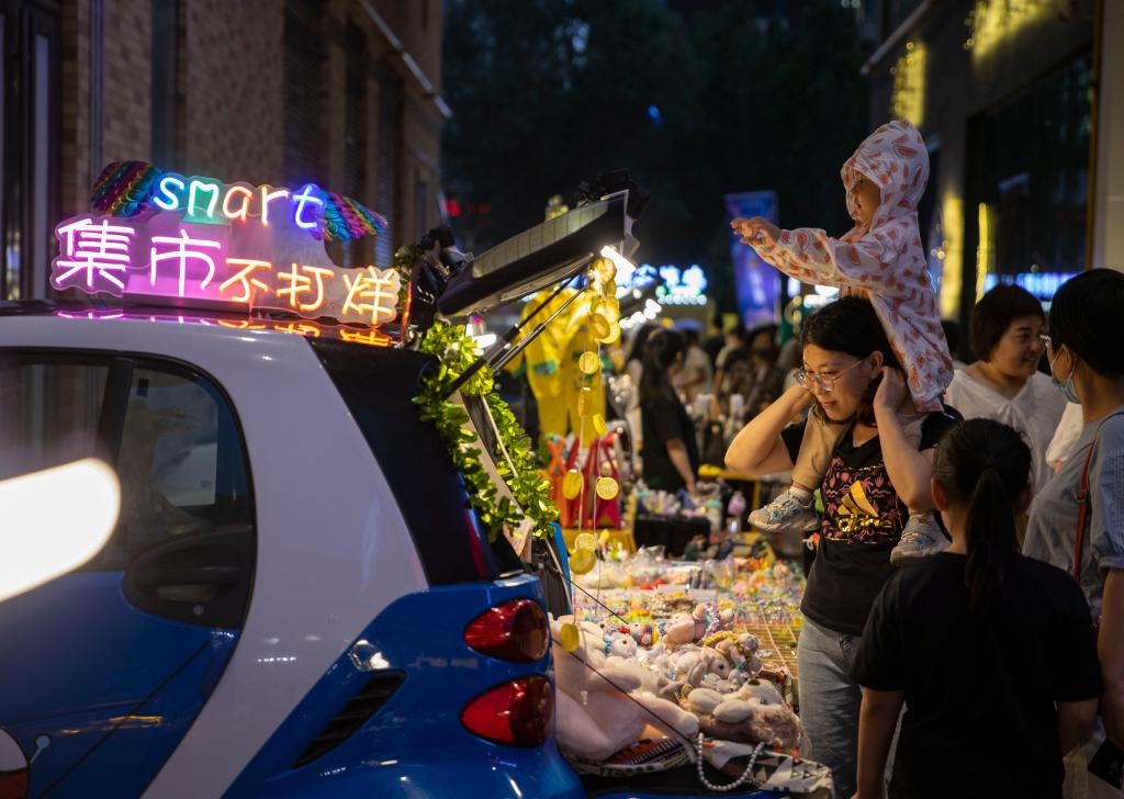 7月2日,游客在寧夏銀川市建發(fā)大閱城特色夜市購物。當(dāng)日,第三屆“寧夏夜綻生活節(jié)”在寧夏銀川市建發(fā)大閱城中街拉開帷幕,吸引眾多游客前來體驗(yàn)城市夜生活。新華社記者楊植森攝