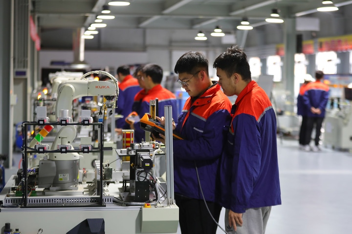圖為11月2日,在沈陽工學院工業(yè)機器人實訓(xùn)中心,機器人工程專業(yè)學生進行工業(yè)機器人基礎(chǔ)實踐應(yīng)用操作。近年來,沈陽工學院全力建設(shè)工業(yè)機器人實訓(xùn)中心,將車間搬進校園。針對企業(yè)需求,學校開展機械加工等實操課程,有力提升學生就業(yè)水平。新華社記者 楊青 攝