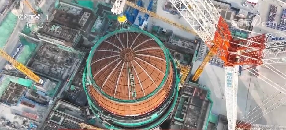 海南昌江:“華龍一號”核電3號機組內穹頂?shù)跹b