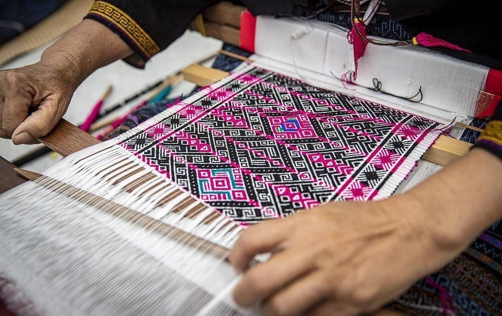 “九仙織女下凡間,開創(chuàng)黎錦三千年?!崩枳鍍号种械睦桢\紡、染、織、繡技藝,是國家級非物質(zhì)文化遺產(chǎn),被譽(yù)為中國紡織史上的“活化石”。