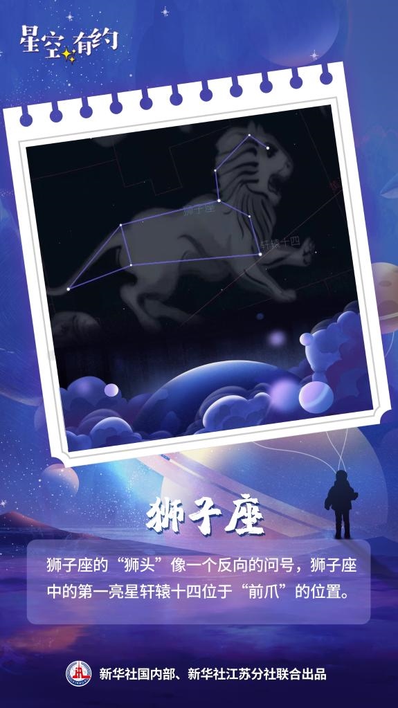 王科超說(shuō),獅子座的“獅頭”像一個(gè)反向的問(wèn)號(hào),“春季大三角”中的五帝座一處于獅子座的“獅尾”,而獅子座中的第一亮星軒轅十四則位于“前爪”的位置。獅子座的觀(guān)測(cè)可以從3月持續(xù)至8月,感興趣的公眾可以一觀(guān)。
