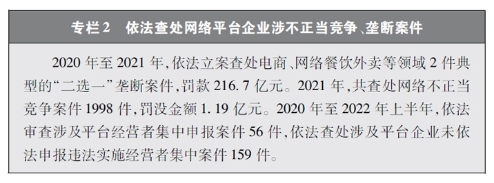 保障公平競爭的網(wǎng)絡市場環(huán)境。隨著網(wǎng)絡平臺企業(yè)不斷擴展自身的體量和實力,“掐尖式并購”、無正當理由屏蔽鏈接、“二選一”、大數(shù)據(jù)殺熟、流量挾持等妨礙市場公平競爭的問題也逐漸凸顯。中國積極回應人民群眾訴求,在支持網(wǎng)絡平臺企業(yè)創(chuàng)新發(fā)展的同時,依法規(guī)范和引導資本健康發(fā)展,采取多種治理平臺競爭失序的執(zhí)法舉措。聚焦大型網(wǎng)絡平臺價格欺詐、低價傾銷等重點問題,通過行政約談、行政指導、規(guī)則指引等多種監(jiān)管手段,整治壟斷和不正當競爭行為。圍繞民生、金融、科技、傳媒等重點行業(yè),依法審查涉及平臺經(jīng)營者集中案件,防止可能妨礙市場競爭和創(chuàng)新發(fā)展的并購行為,引導網(wǎng)絡平臺企業(yè)增強合規(guī)意識,規(guī)范自身經(jīng)營行為。通過一系列行動,平臺經(jīng)濟市場環(huán)境不斷優(yōu)化,公平競爭的行業(yè)生態(tài)穩(wěn)步向好,中小企業(yè)獲得更廣闊的發(fā)展空間,統(tǒng)一、開放、公平、競爭、有序的網(wǎng)絡競爭環(huán)境正在形成。