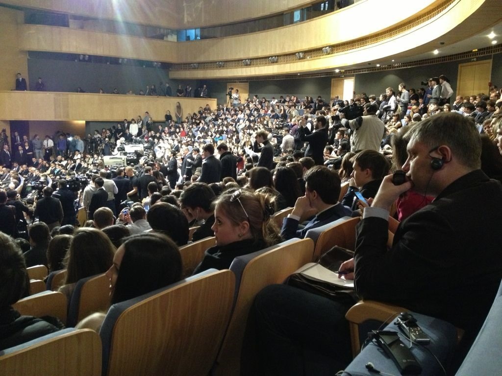 2013年3月23日,國(guó)家主席習(xí)近平在莫斯科國(guó)際關(guān)系學(xué)院發(fā)表演講時(shí),現(xiàn)場(chǎng)座無(wú)虛席。新華社發(fā)