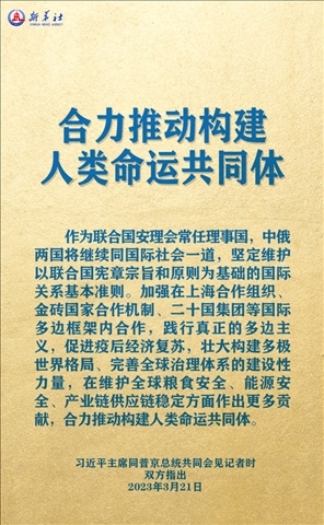 3月20日,習(xí)近平主席在《俄羅斯報(bào)》和俄新社網(wǎng)站上發(fā)表的署名文章中,回顧了構(gòu)建人類命運(yùn)共同體理念的發(fā)展歷程。
