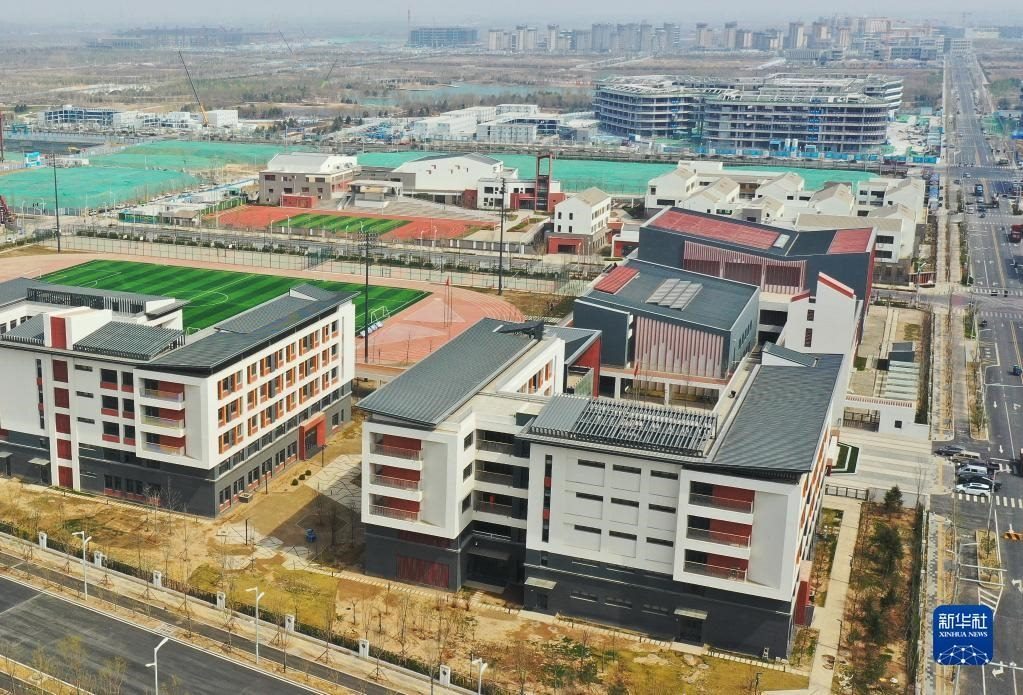 北京第四中學(xué)雄安校區(qū)和史家胡同小學(xué)雄安校區(qū)(2023年3月26日拍攝,無(wú)人機(jī)照片)。新華社記者 楊世堯 攝