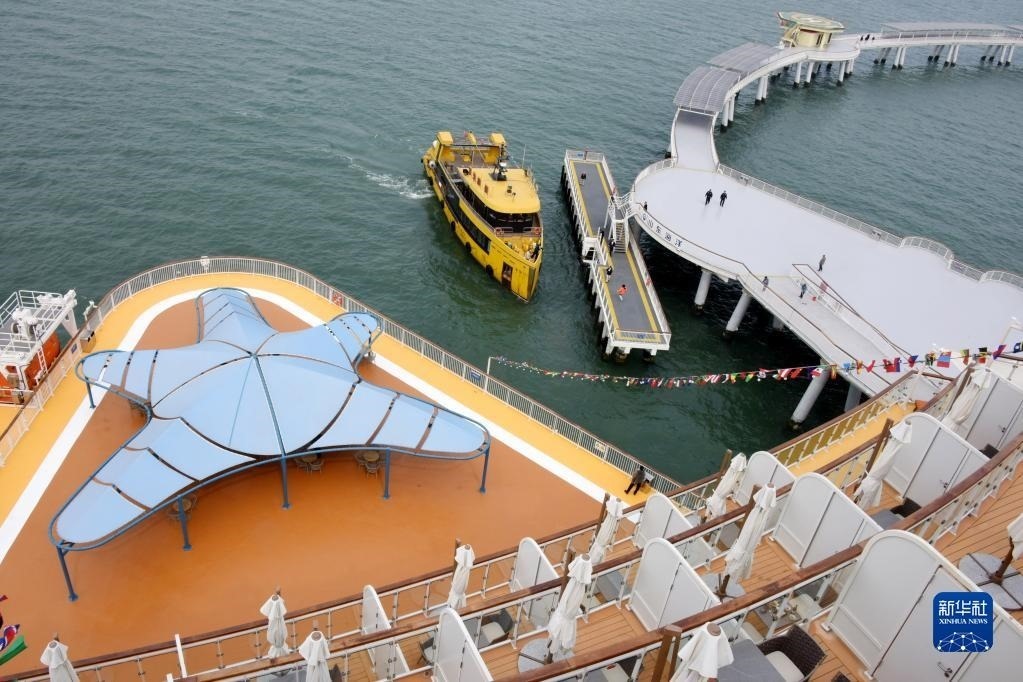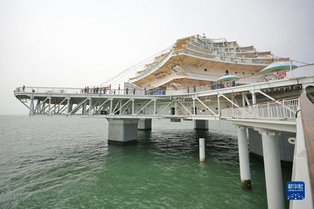 當(dāng)日,位于山東省煙臺(tái)市萊山區(qū)的“耕海1號(hào)”海洋牧場(chǎng)綜合體二期項(xiàng)目投入運(yùn)營(yíng)。“耕海1號(hào)”集漁業(yè)養(yǎng)殖、海上觀光、休閑垂釣、餐飲住宿、科研科普等于一體,創(chuàng)新性實(shí)現(xiàn)現(xiàn)代海洋漁業(yè)、海洋工程技術(shù)和海洋文化旅游產(chǎn)業(yè)深度有機(jī)融合。新華社發(fā)(唐克攝)