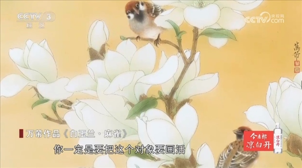 工筆花鳥畫家 上海市文史研究館館員 萬芾:我體驗了一個生命的過程,我也看著鳥的成長,也看著花從一顆種子到發(fā)芽,到花蕾到盛開、凋零,生命的過程每次看我都很有感觸,我說生生不息,每張畫里都是這樣的給你的體會,甚至有時候我覺得我就像一一朵花,一只鳥一樣,我會自由地飛翔。
