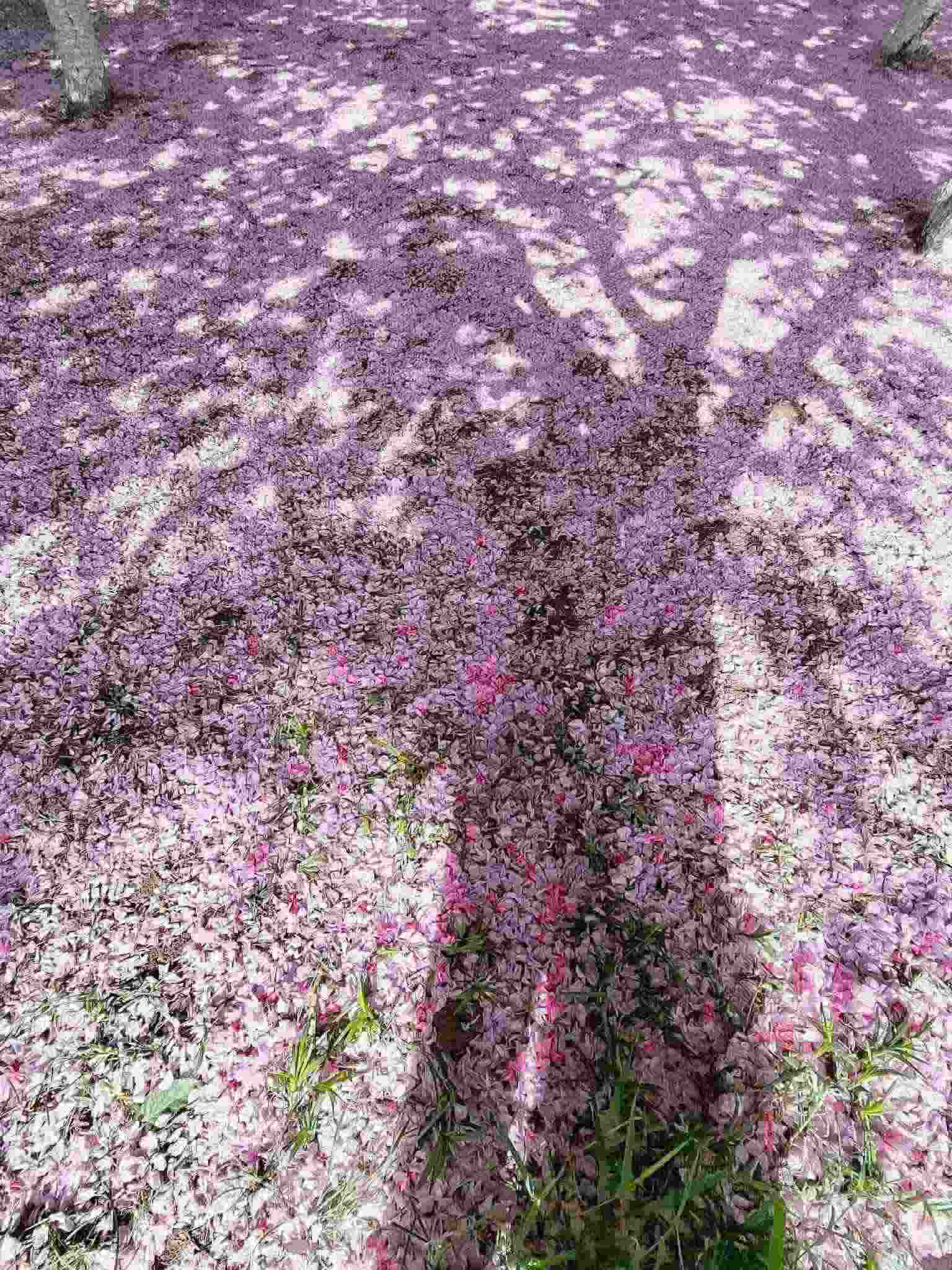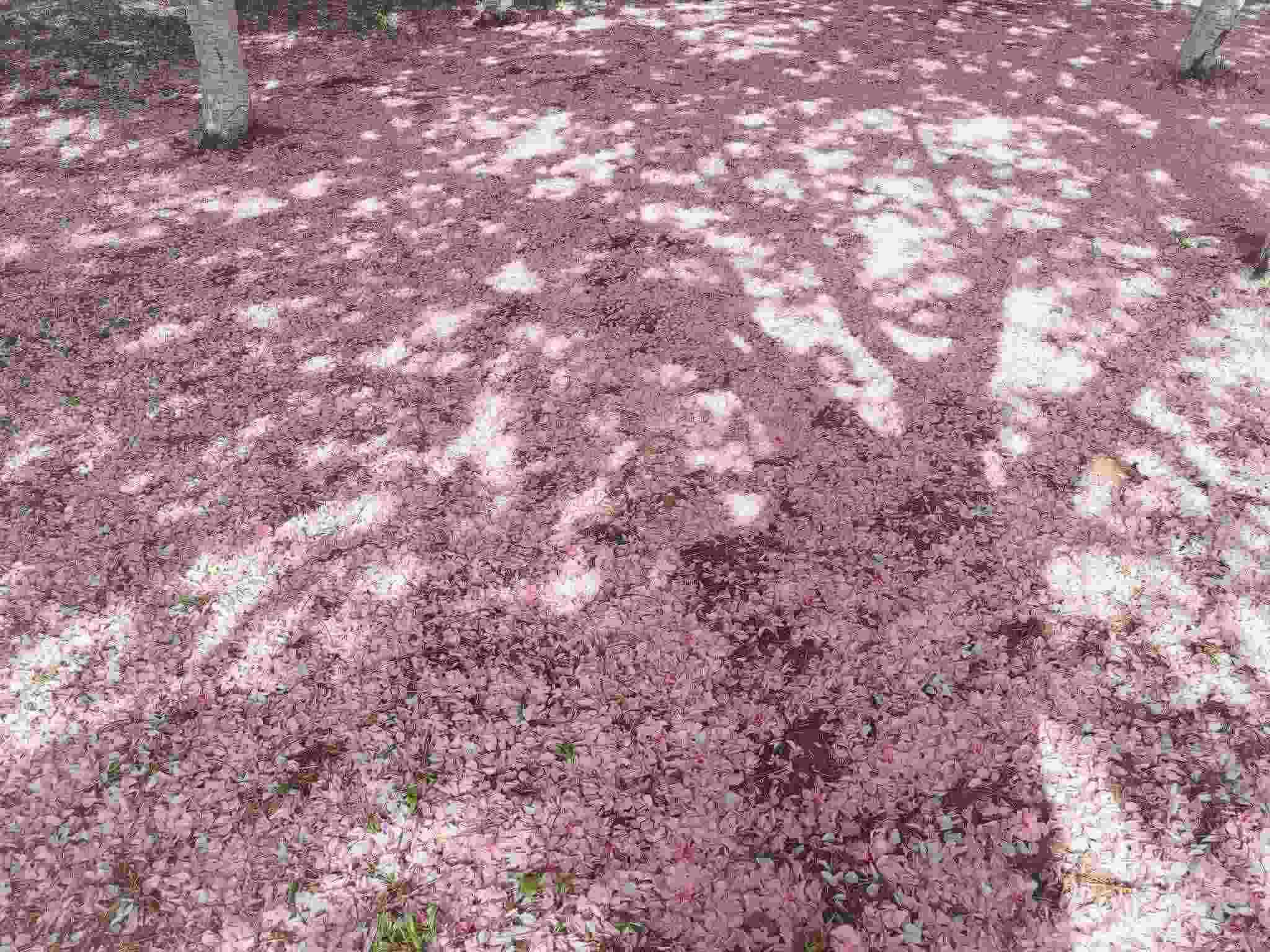 2023年4月29日,青島中山公園,經(jīng)歷風(fēng)雨之后,櫻花樹(shù)下落了厚厚一層花瓣。視覺(jué)中國(guó)