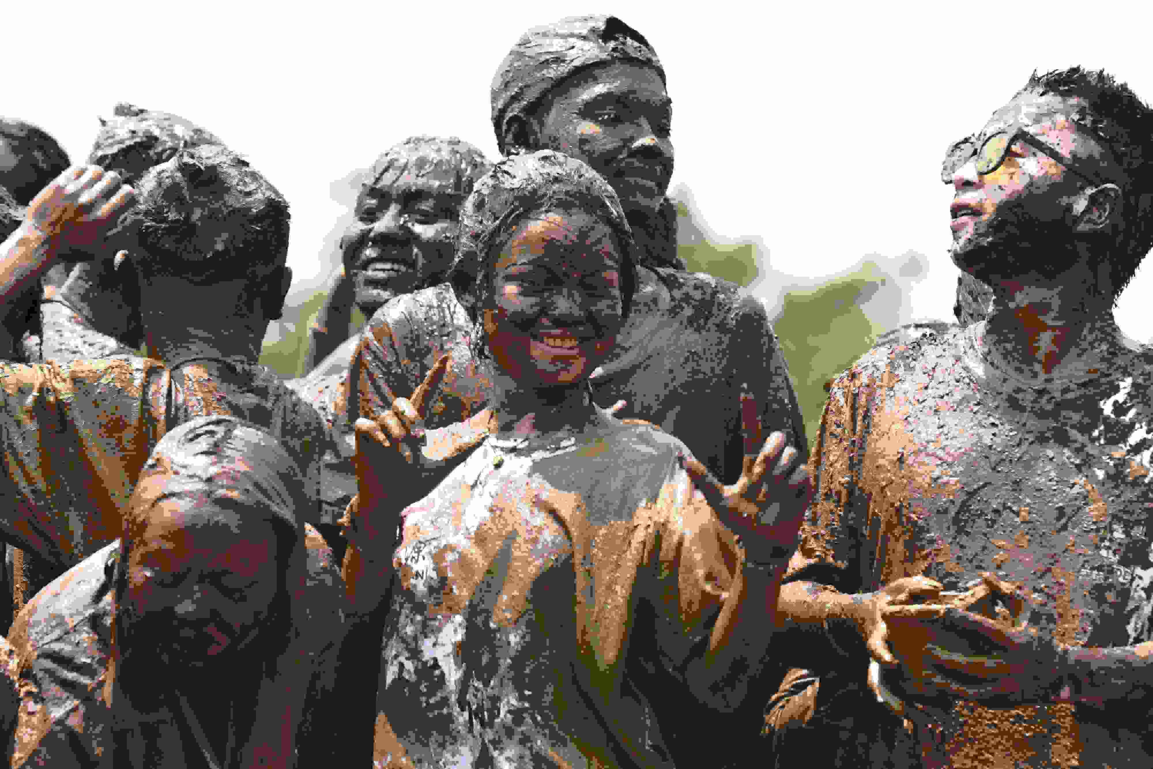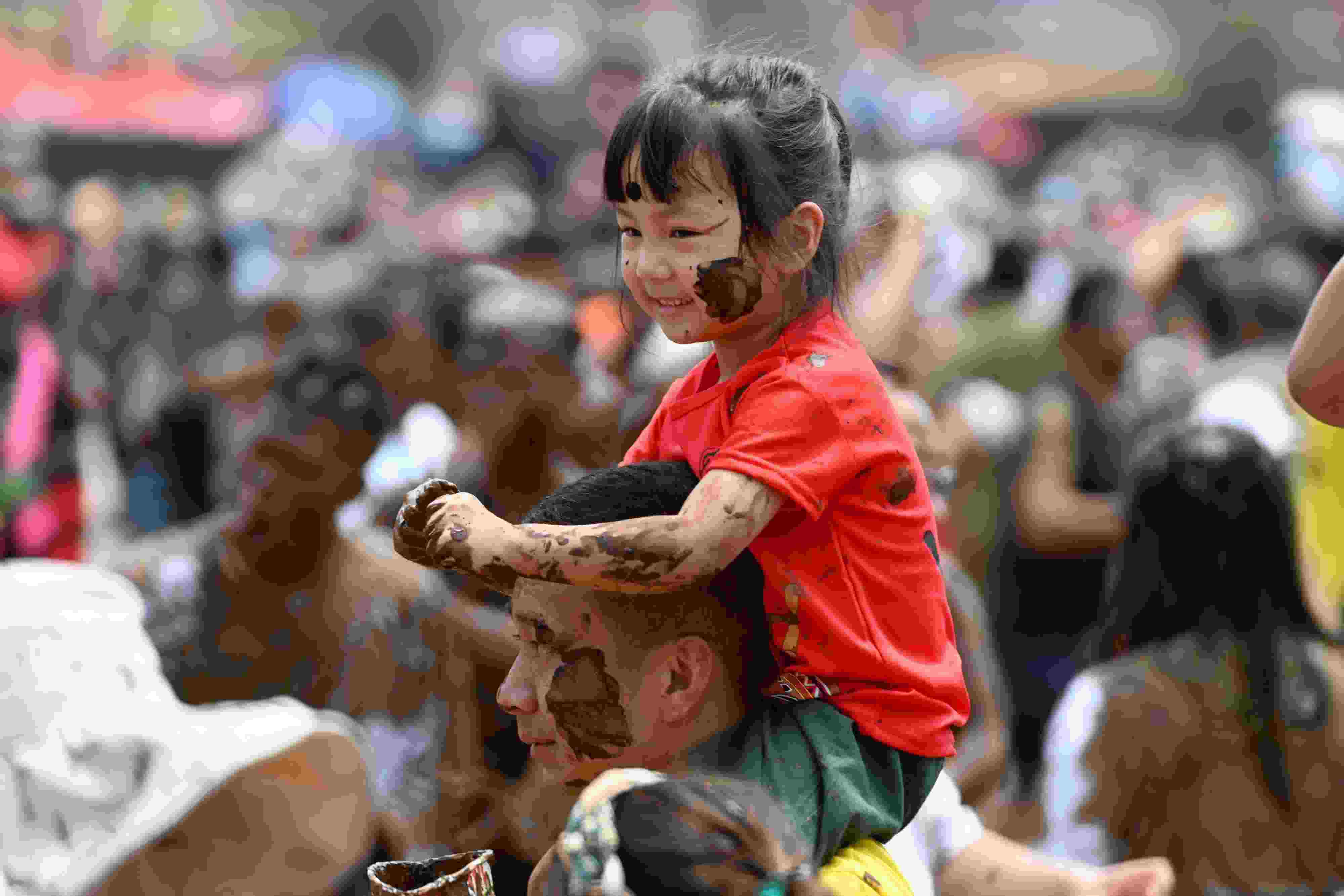 2023年4月30日,云南臨滄,游客相互抹泥表示祝福。當(dāng)日,2023年中國(guó)佤族司崗里摸你黑狂歡節(jié)在云南省臨滄市滄源佤族自治縣啟幕。人們用天然原料“娘布洛”配置而成的涂料相互涂抹表示祝福,摸得越黑,代表快樂(lè)幸福越長(zhǎng)久。 視覺(jué)中國(guó)