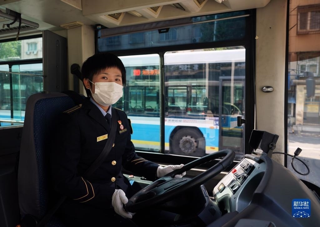 5月1日,在位于北京市朝陽區(qū)的柳芳公交場(chǎng)站,104路公交車駕駛員高國(guó)然駕駛車輛準(zhǔn)備駛出。