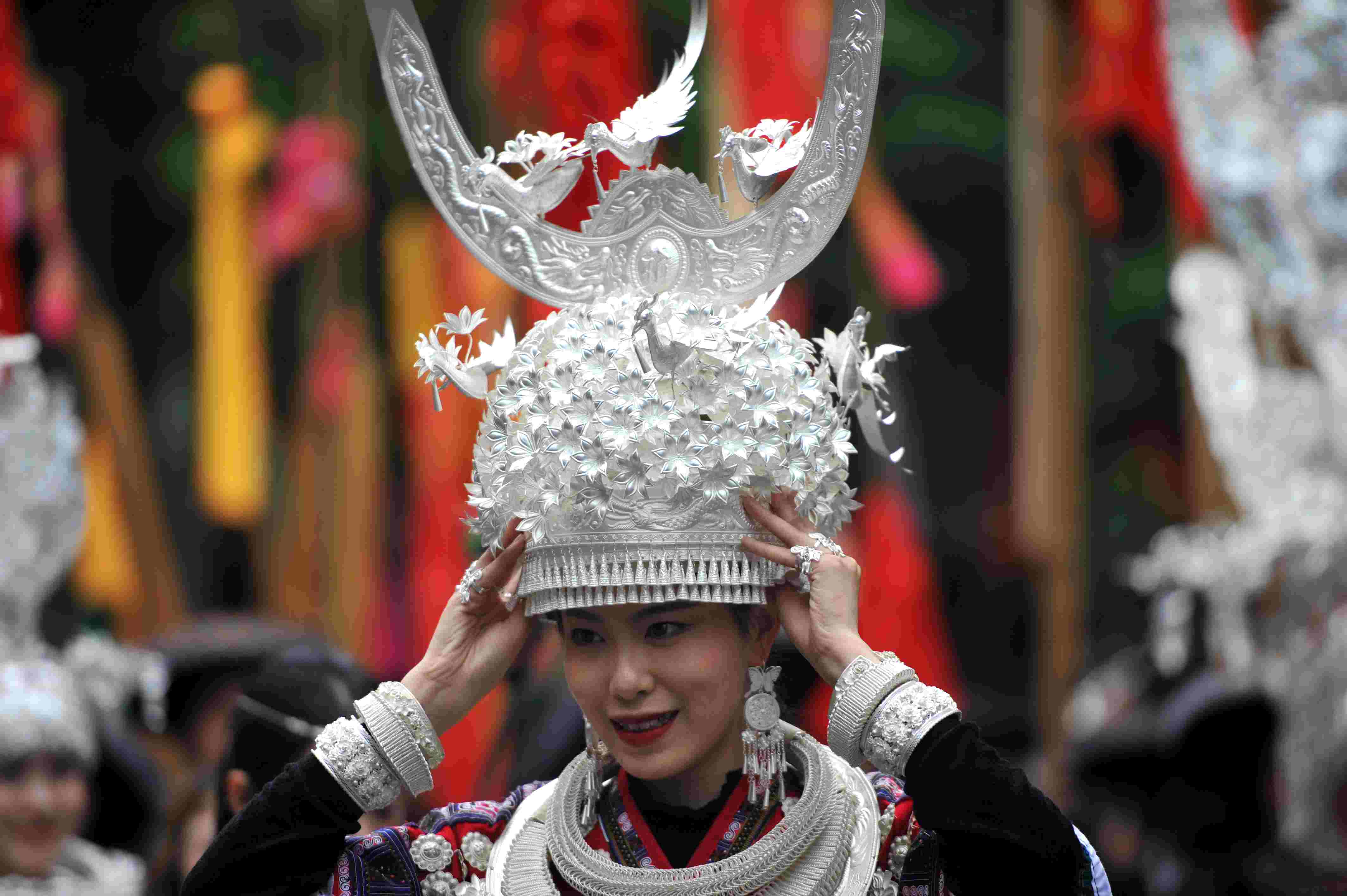 貴州省臺(tái)江縣苗族文化豐富多彩厚重,其服飾是苗族文化的重要載體,苗族女子服飾以靚麗的銀飾、精美的刺繡和獨(dú)特的審美文化內(nèi)涵而被稱(chēng)為“穿在身上的史書(shū)”,成為識(shí)別苗族9大支系的重要標(biāo)識(shí),具有極高的藝術(shù)、觀賞和收藏價(jià)值。 (寧堅(jiān))