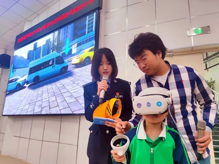 今天(5月4日)是五四青年節(jié),北京警察學院大學生交通安全宣講團來到昌平流村小學,開展“大學生牽手小學生,知危險會避險”的主題宣傳活動,通過文藝表演、VR實景體驗、情景劇以及多種交通安全體驗類的游戲講解交通安全知識,以這種特殊的方式慶祝自己的節(jié)日。