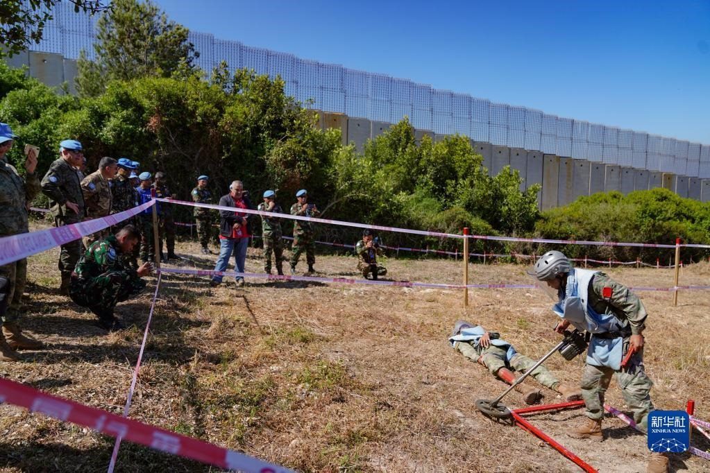 5月3日,在黎巴嫩南部邊境“藍(lán)線(xiàn)”附近雷場(chǎng),參與演習(xí)的中國(guó)第21批赴黎巴嫩維和多功能工兵分隊(duì)掃雷作業(yè)手開(kāi)辟救援通道。