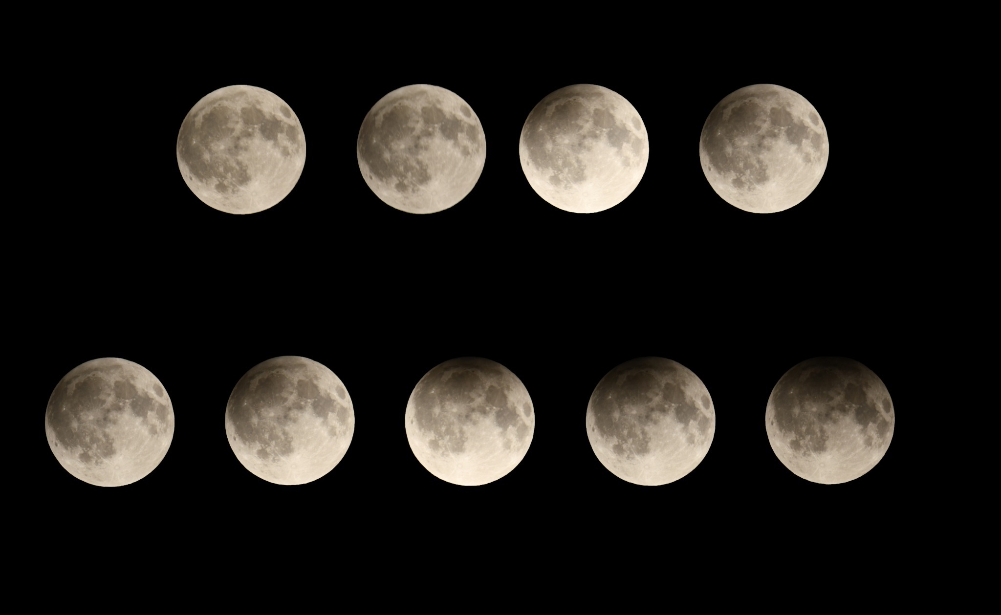 5月5日,2023年首場(chǎng)月食登場(chǎng),這是一次半影月食,月亮的“臉色”從亮變暗,再?gòu)陌底兞粒覈?guó)可見(jiàn)全過(guò)程(拼版照片)。視覺(jué)中國(guó)