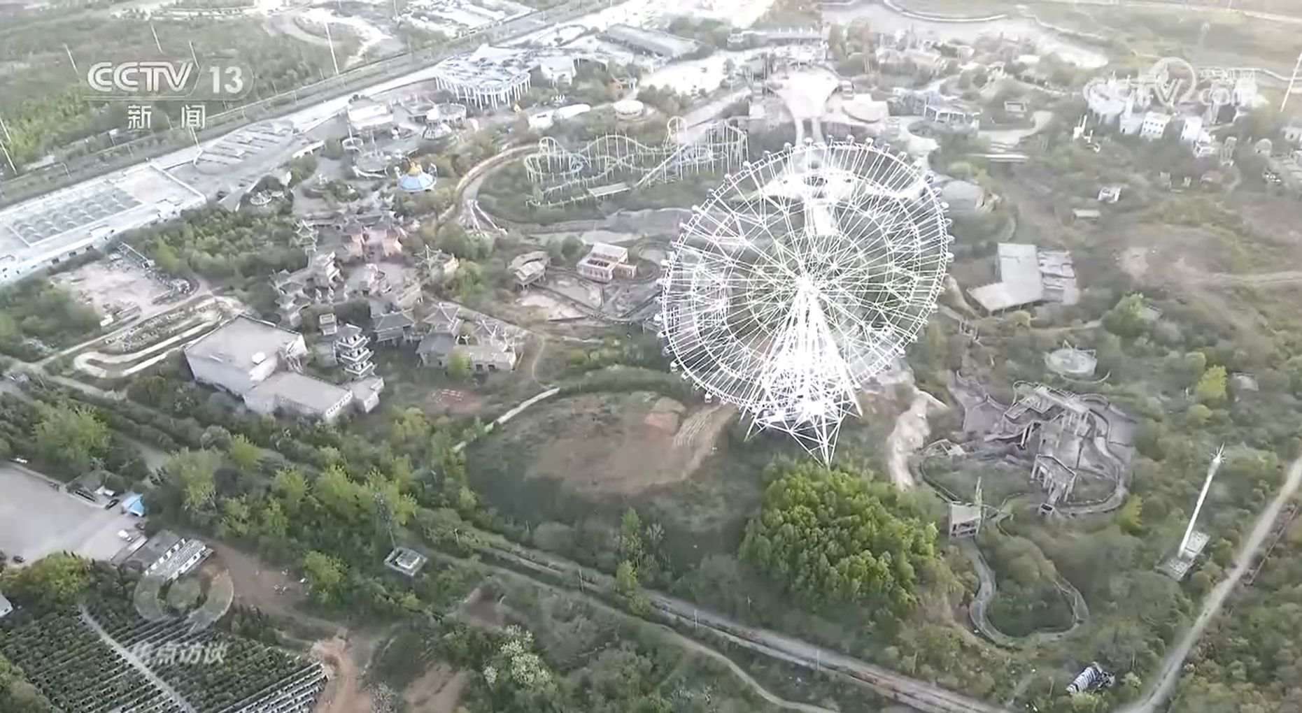 “淮南之眼”號稱亞洲最高的山體摩天輪,直徑120米,高達(dá)168米,相當(dāng)于55層樓高,但經(jīng)過十多年的日曬雨淋,早已銹跡斑斑,成為了危險娛樂設(shè)施。雖然歡樂園現(xiàn)在看起來破敗不堪,但13年前它可是當(dāng)?shù)氐拿餍琼椖浚粫r風(fēng)光無限。2011年,時任淮南市市長曹勇在酒店會見志高集團董事局主席江東廷時表示,市委、市政府將全力支持項目的建設(shè),確保歡樂園按計劃盛大開園。記者翻閱2010—2013年的淮南市政府工作報告時,也發(fā)現(xiàn)這個項目每年都是政府工作的重點內(nèi)容之一。