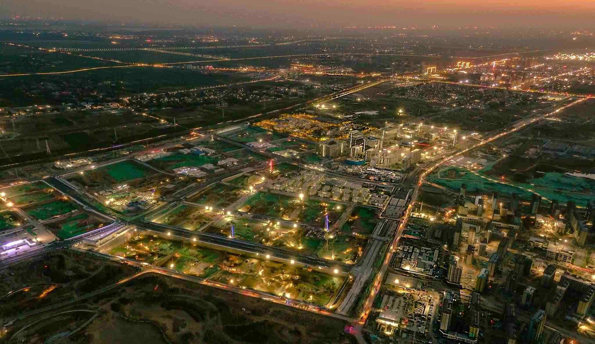△雄安新區(qū)市民服務(wù)中心夜景航拍。