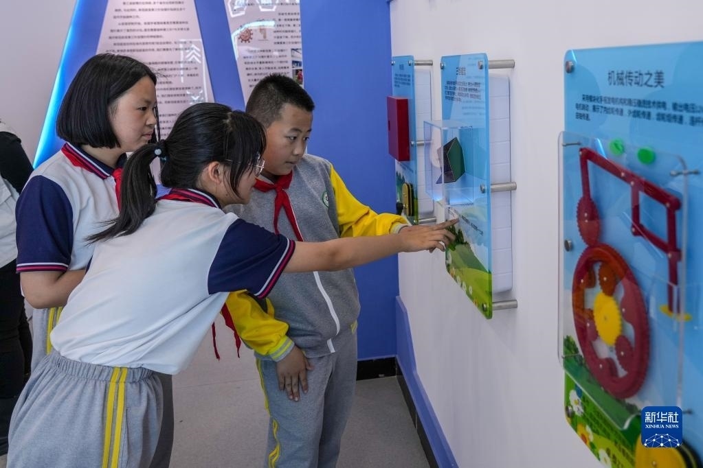 5月11日,小學(xué)生在馬店村科普體驗中心內(nèi)體驗科普展品。