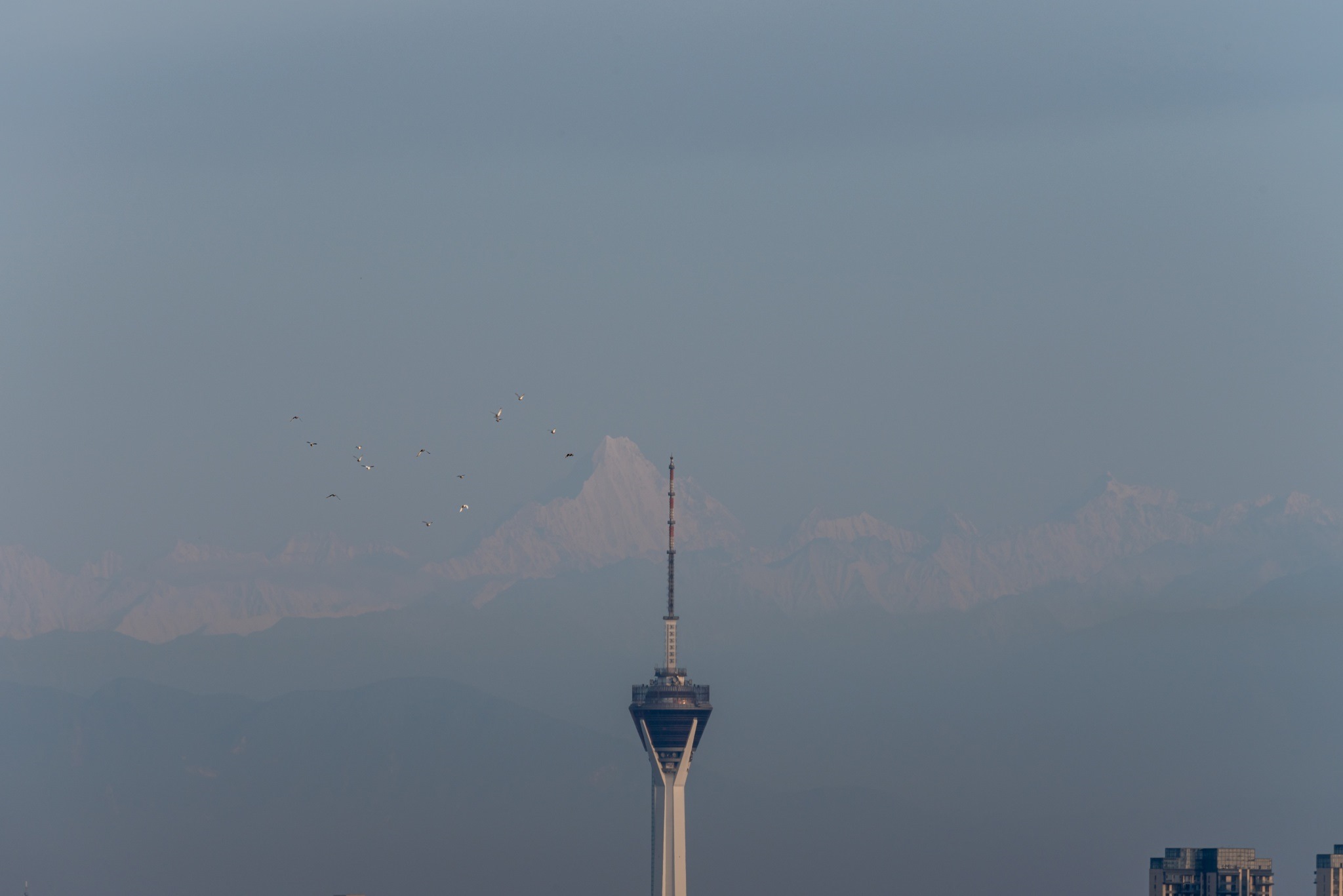 成都:幺妹峰露出真容 與城市建筑同框