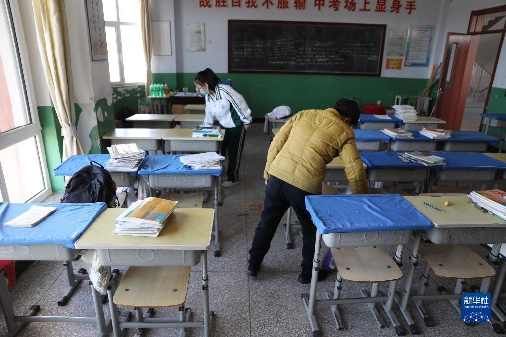 清晨,張連琴和女兒第一個(gè)來到教室,打掃衛(wèi)生。這是母女倆多年來每天到校必做的一件事(5月8日攝)。