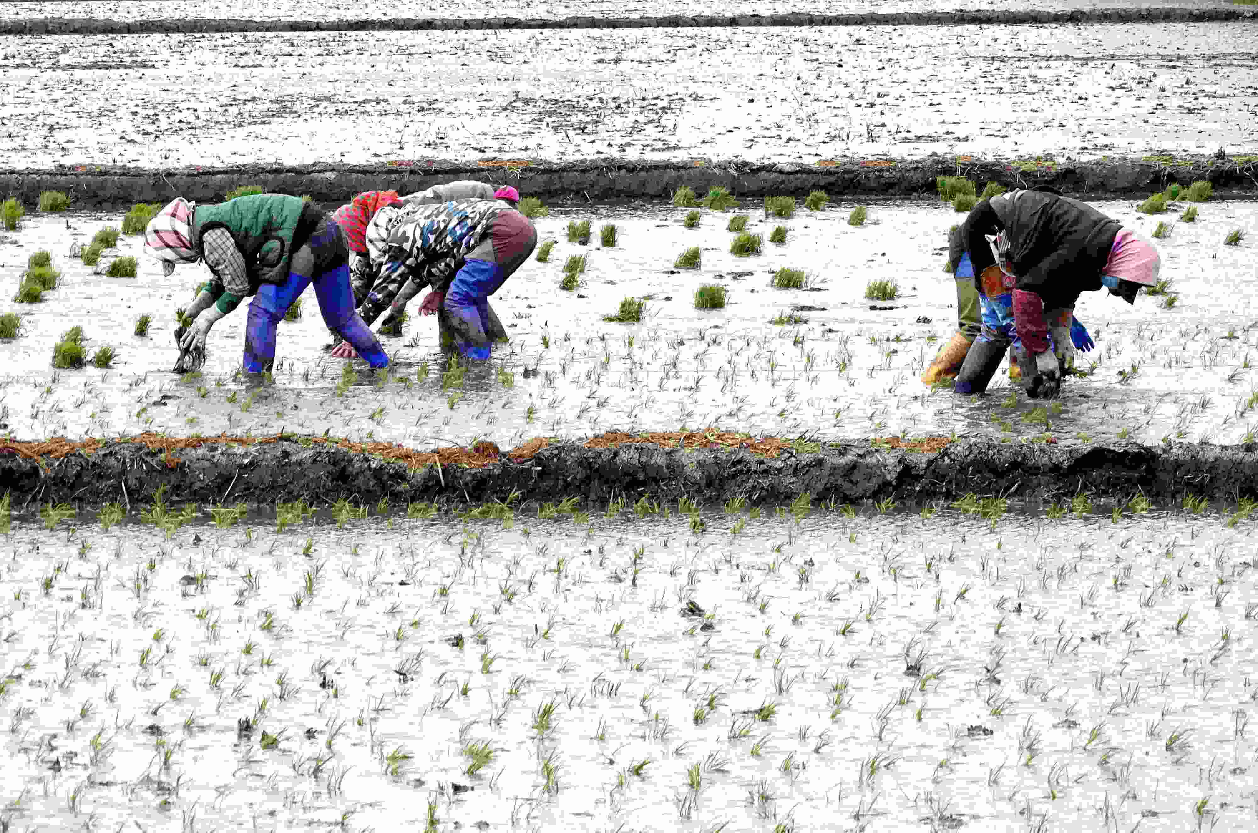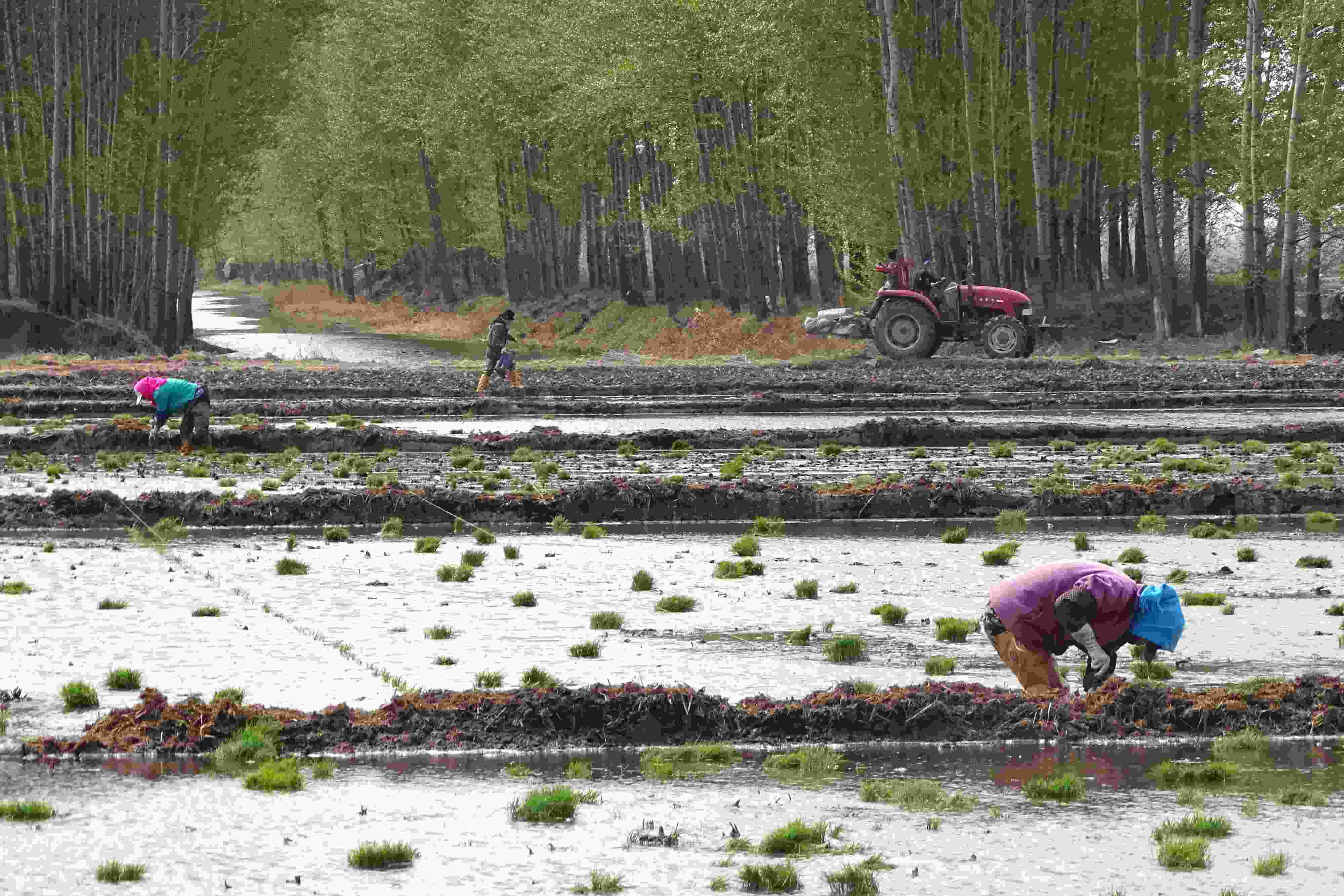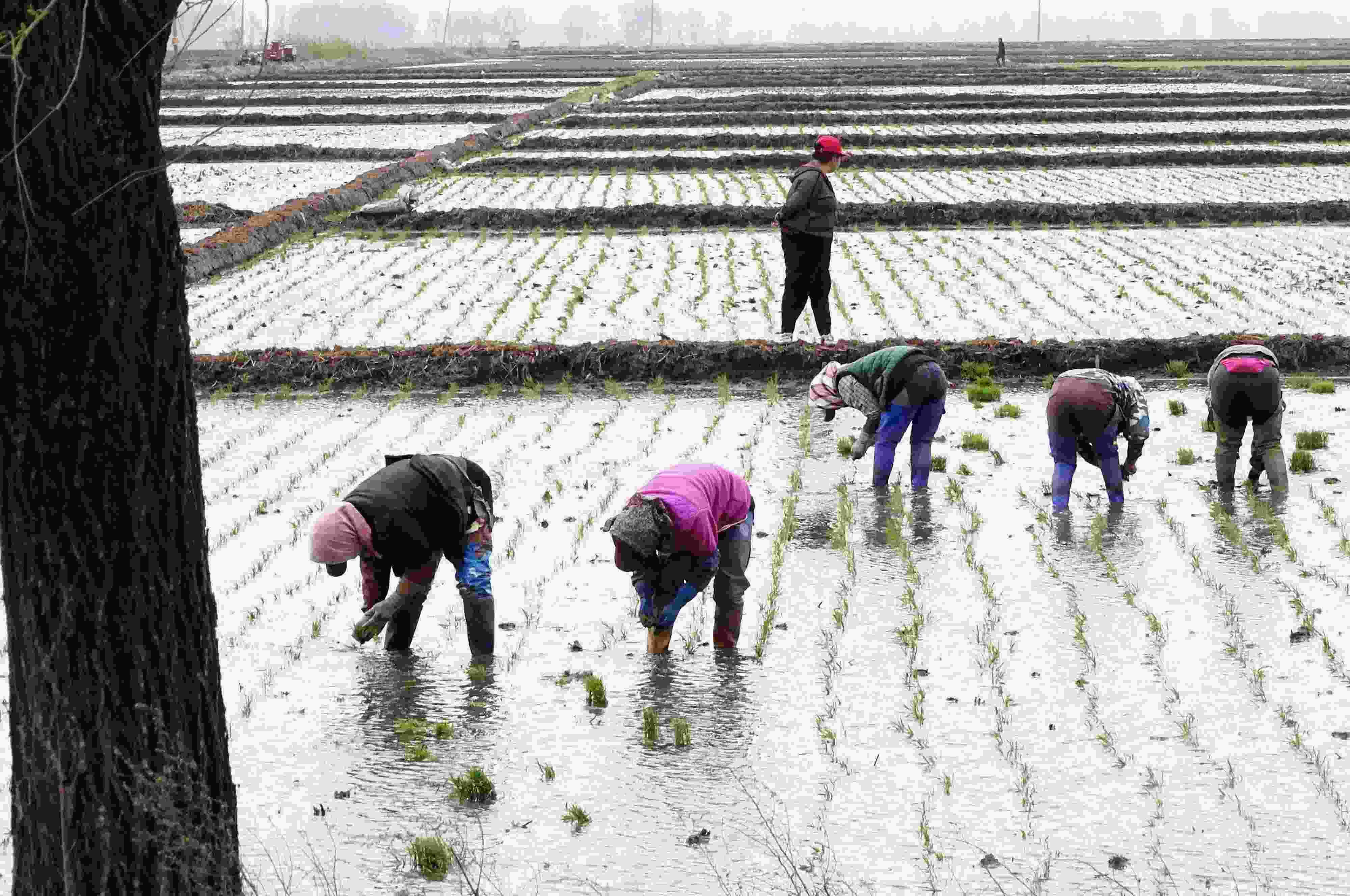 五月中旬,黑龍江省五常市,當地農戶搶抓農時開展夏季插秧大生產,田間地頭一派繁忙景象。 (吳胡荼 攝)