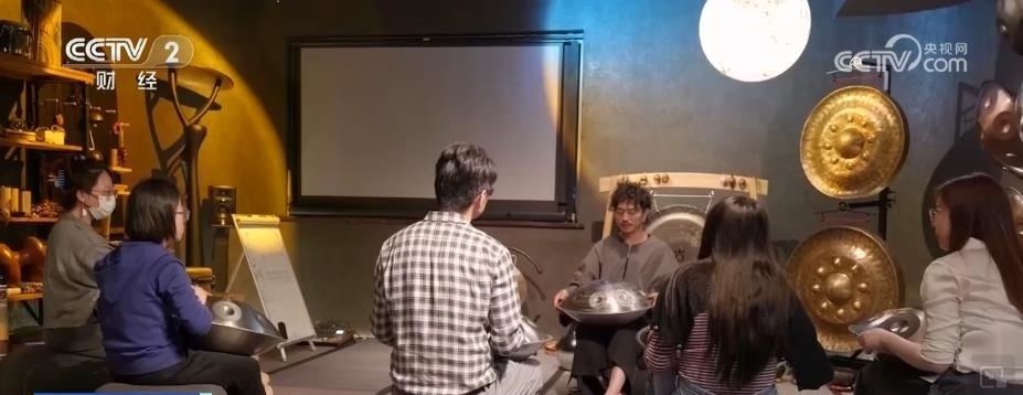 傳統(tǒng)小店被賦予了新場(chǎng)景的同時(shí),一些新奇有趣的業(yè)態(tài)也找到了生存的土壤。晚上7點(diǎn)30分,在上海長(zhǎng)寧區(qū)的一個(gè)寫(xiě)字樓里,一場(chǎng)手碟培訓(xùn)課正在進(jìn)行中。席地而坐的竹席、深灰色的墻面和月球燈營(yíng)造出治愈沉靜的氣氛,手碟空靈的聲音不時(shí)響起。