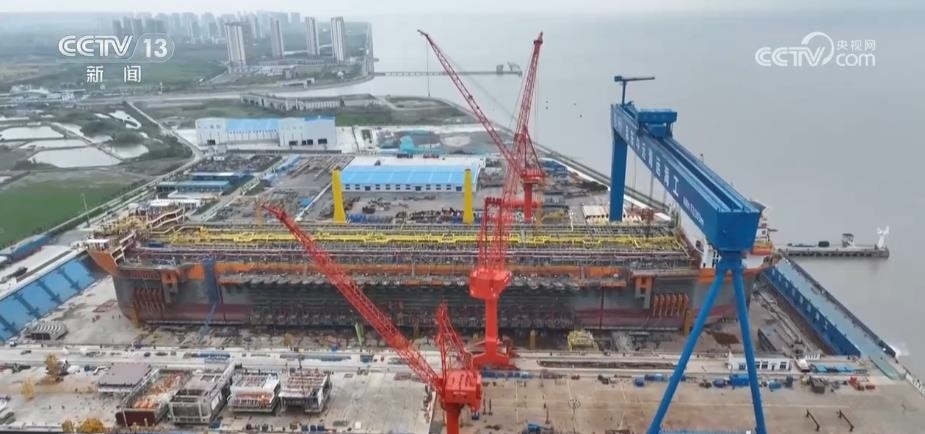 總臺記者 唐高林:我現在是在位于長江入??诘囊患掖爸圃炱髽I(yè),高質量發(fā)展調研行的團隊,正在這里調研。這幾天調研團一路沿江而下,從南京到揚州再到無錫等多個城市,看到了江蘇作為制造業(yè)大省,持續(xù)推進“產業(yè)強鏈補鏈”計劃,實體經濟呈現出良好的發(fā)展態(tài)勢。