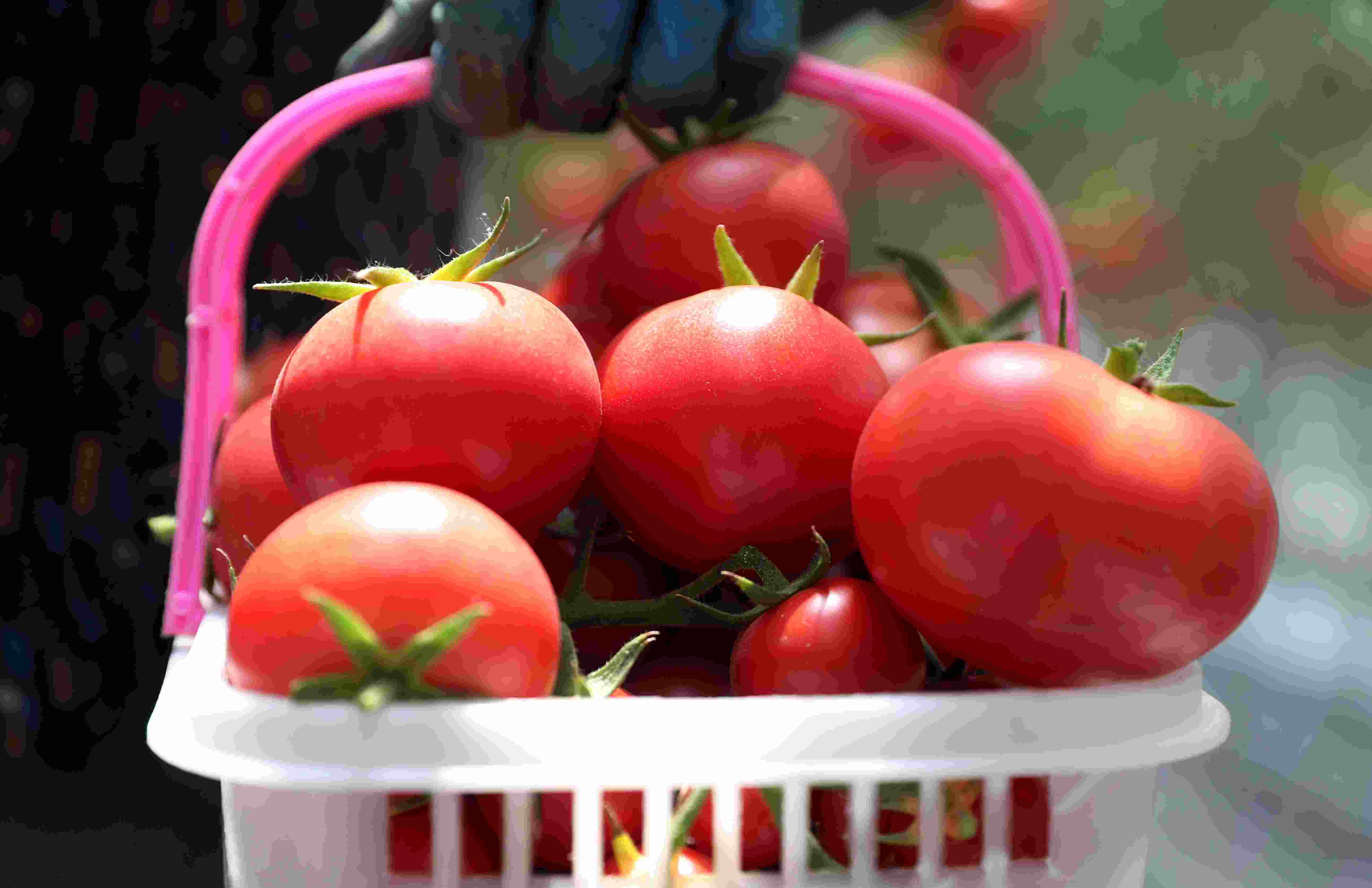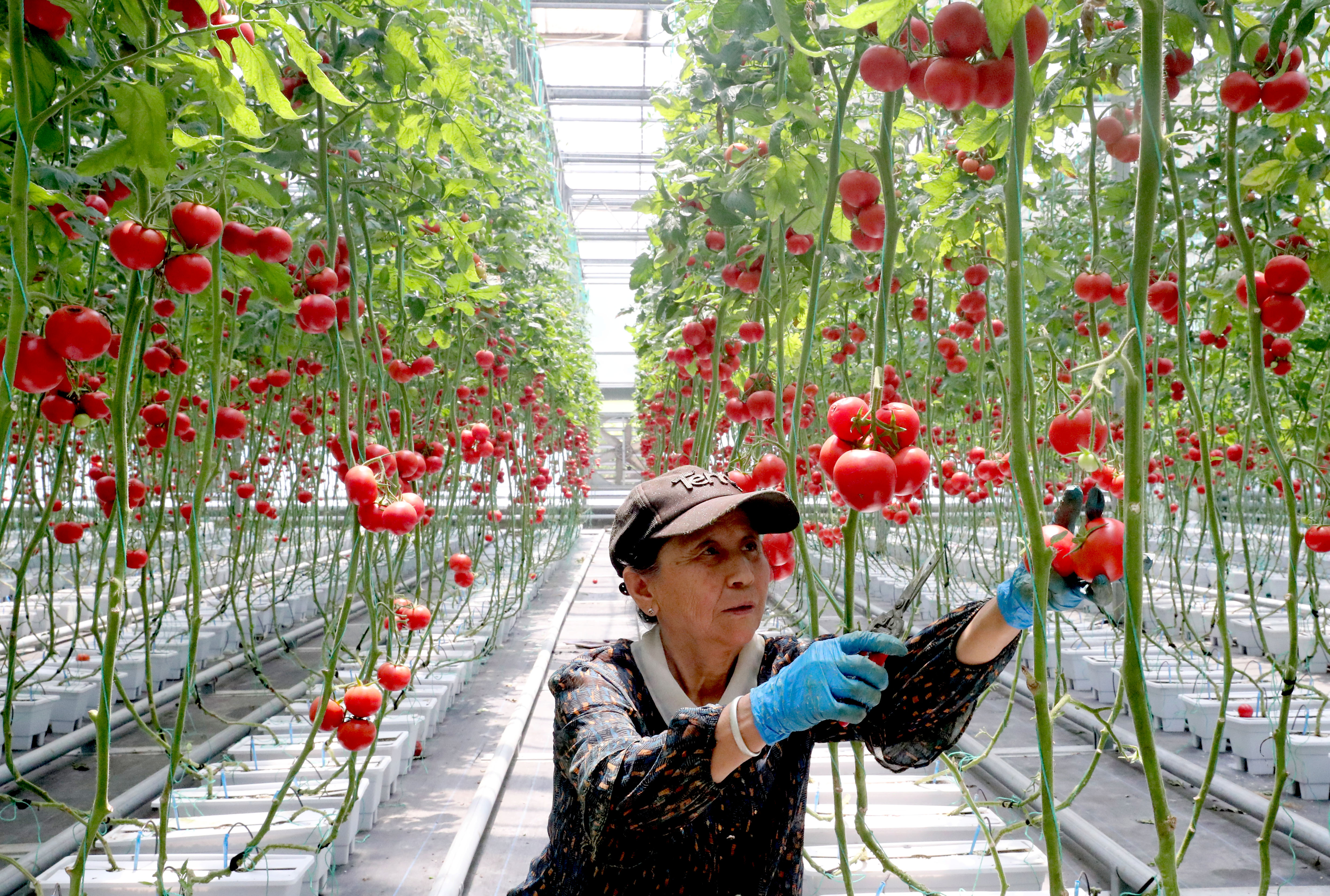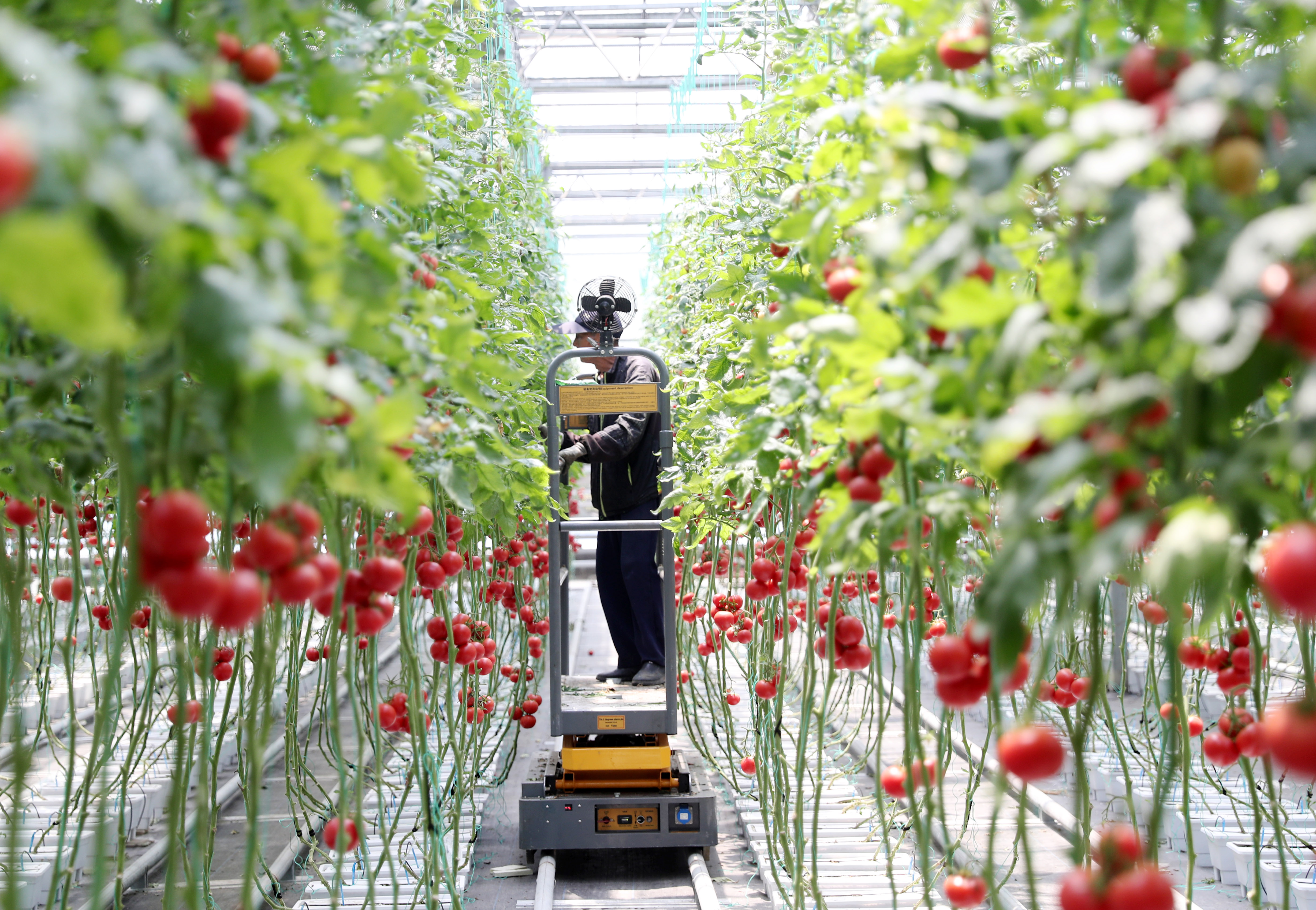 5月15日,村民在青島市即墨區(qū)北安街道一家智慧農(nóng)場(chǎng)內(nèi)采摘西紅柿供應(yīng)市場(chǎng)。 張進(jìn)剛 攝