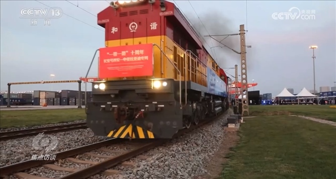 就在上個(gè)月,為紀(jì)念“一帶一路”十周年特別開(kāi)行的中歐班列——“一帶一路”十周年長(zhǎng)安號(hào)西安—中亞專列從西安國(guó)際港務(wù)區(qū)發(fā)車。2013年11月,首列中歐班列長(zhǎng)安號(hào)正是由這里出發(fā),開(kāi)往哈薩克斯坦。從這里啟程的長(zhǎng)安號(hào),從最初的年開(kāi)行46列發(fā)展到去年的4600多列,十年增長(zhǎng)了100倍。十年來(lái),長(zhǎng)安號(hào)累計(jì)開(kāi)行超過(guò)1.6萬(wàn)列。其中,中亞五國(guó)開(kāi)行量達(dá)到4250列,為促進(jìn)中國(guó)同中亞互聯(lián)互通與經(jīng)貿(mào)合作發(fā)揮了重要作用。