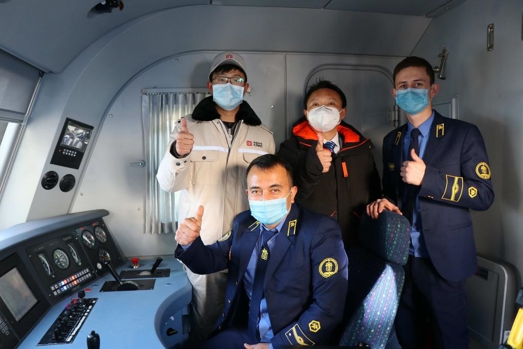 這是中國電力機車出口烏茲別克斯坦,中方技術人員和烏方駕駛人員的合影。