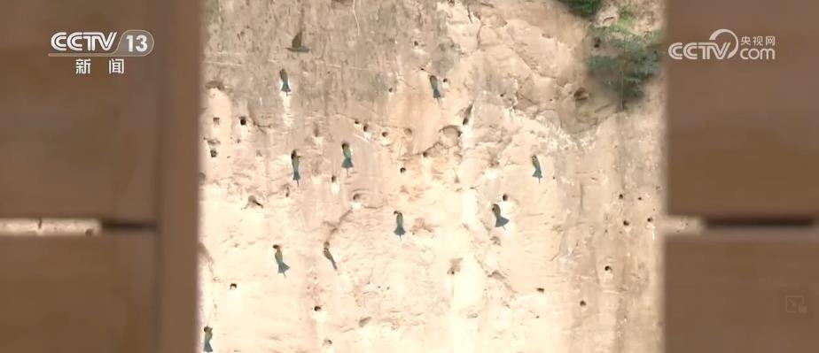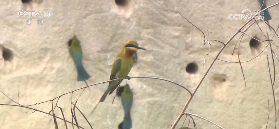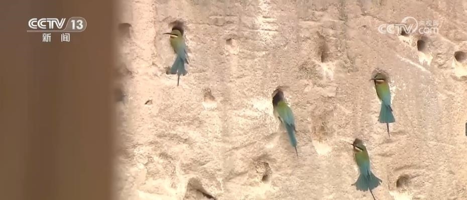 眼前,這些看上去很像是泥巴墻的建筑,其實是人工建造的候鳥巢穴。根據栗喉蜂虎的生活習慣,保護區(qū)工作人員專門在它們回來之前就對懸壁進行修整,讓這些美麗的小鳥更方便安家。
