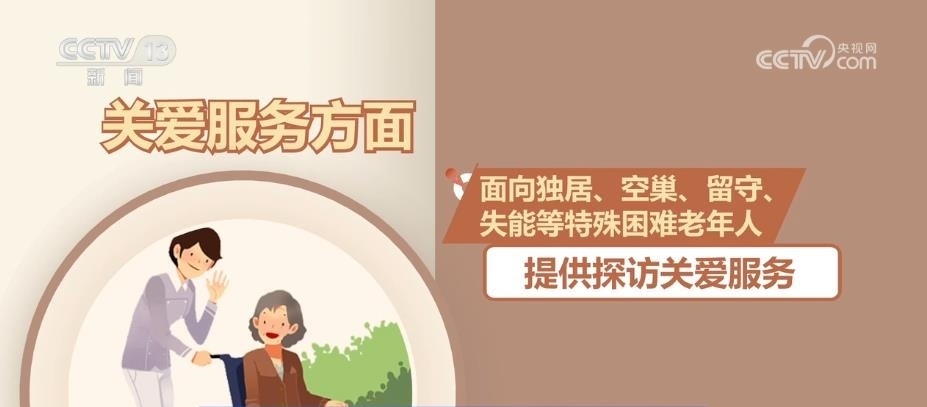 關(guān)愛(ài)服務(wù)方面,面向獨(dú)居、空巢、留守、失能等特殊困難老年人提供探訪(fǎng)關(guān)愛(ài)服務(wù)。