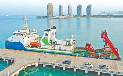 5月21日,完成南海西北陸坡一號(hào)沉船第一次考古調(diào)查的“探索一號(hào)”科考船攜“深海勇士”號(hào)載人潛水器抵達(dá)三亞(無人機(jī)照片)。新華社記者 郭 程攝