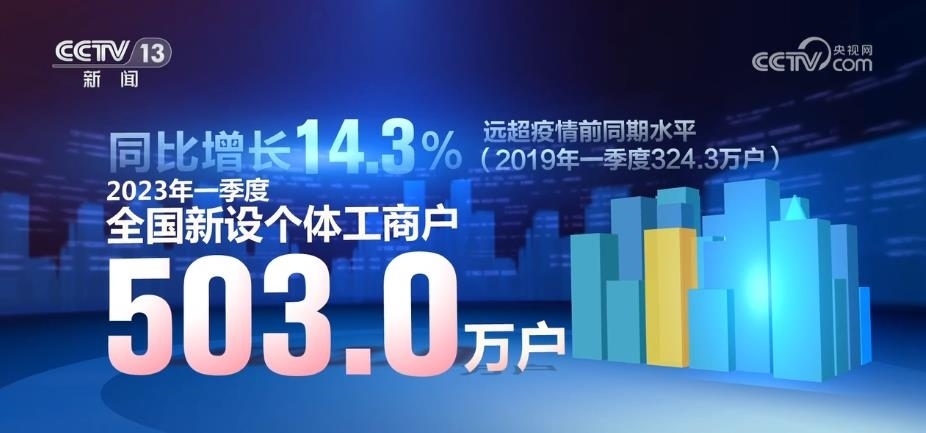 央視網(wǎng)消息:市場(chǎng)監(jiān)管總局5月22日發(fā)布最新數(shù)據(jù)顯示,2023年一季度,全國(guó)新設(shè)個(gè)體工商戶(hù)503.0萬(wàn)戶(hù),同比增長(zhǎng)14.3%,遠(yuǎn)超疫情前同期水平。