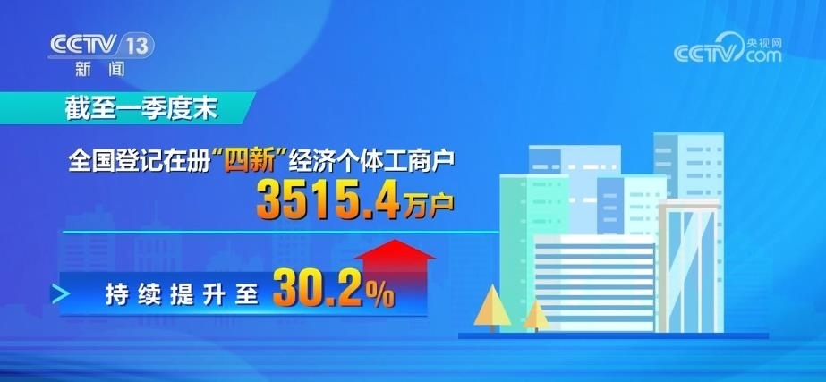 近年來(lái),隨著新技術(shù)、新產(chǎn)業(yè)、新業(yè)態(tài)、新模式的蓬勃發(fā)展,網(wǎng)絡(luò)直播、微商電商等“新個(gè)體經(jīng)濟(jì)”不斷涌現(xiàn),為我國(guó)經(jīng)濟(jì)轉(zhuǎn)型升級(jí)注入了新的活力。截至一季度末,全國(guó)登記在冊(cè)“四新”經(jīng)濟(jì)個(gè)體工商戶(hù)3515.4萬(wàn)戶(hù),總量占比由2019年的24.9%持續(xù)提升至30.2%。