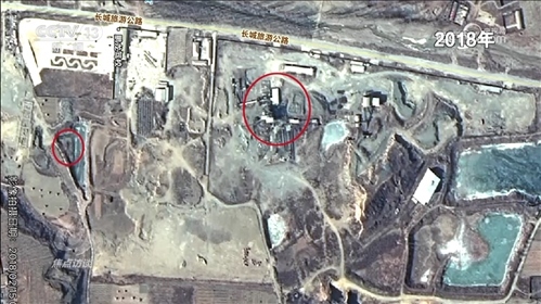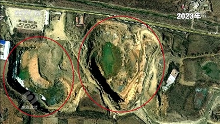 這兩個(gè)大坑真的如這位負(fù)責(zé)人所說變化不大嗎?記者查閱了從2018年至今的衛(wèi)星圖片,上面清晰顯示:2018年,北面大坑上面原來有廠房,還有道路,南面是一個(gè)尾礦庫(kù)。2019年,地塊南北同時(shí)出現(xiàn)新挖的坑,之后這兩個(gè)坑不斷擴(kuò)大。到了2020年,北面的廠房已經(jīng)不見了,南面的坑也在變大。2021年、2022年,兩個(gè)大坑都在變大變深,逐漸靠攏,到了2023年,最終形成了現(xiàn)在的樣子。