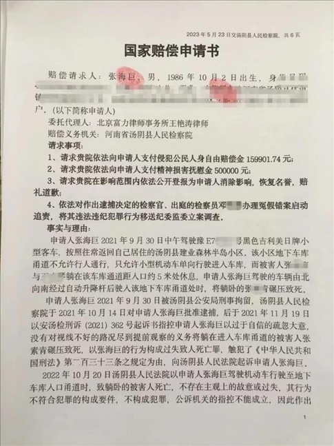 ·清潔工躺車庫甬道午睡被碾身亡,司機(jī)被羈押366天后獲判無罪,申請國家賠償。