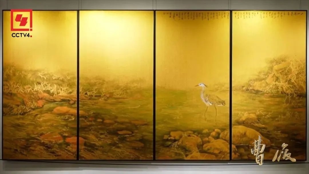 他把潑彩和工筆相結(jié)合,創(chuàng)作出了一種新風(fēng)格的作品,在這種風(fēng)格的作品中,體現(xiàn)了宋代審美中高古的意境,同時又抒發(fā)了大文化、大關(guān)懷。