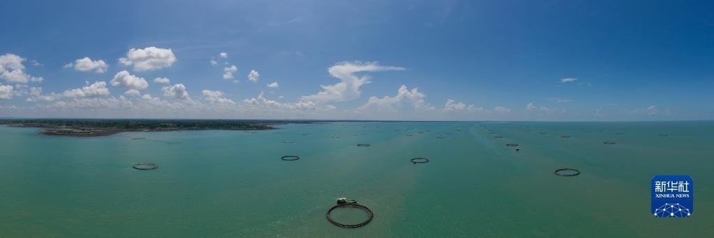 湛江徐聞西連鎮(zhèn)的“海上牧場”(5月27日攝,無人機全景照片)。