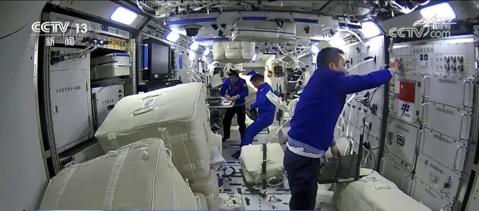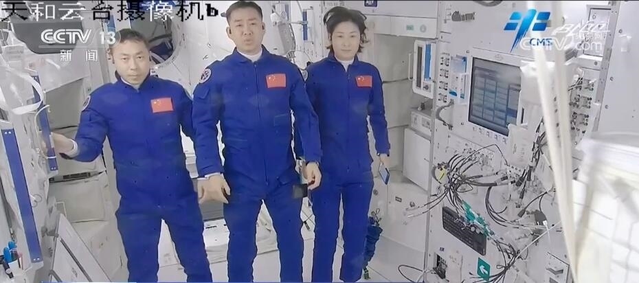 2022年6月5日,空間站迎來(lái)了神舟十四號(hào)陳冬、劉洋、蔡旭哲三名航天員入駐。隨著問(wèn)天實(shí)驗(yàn)艙、夢(mèng)天實(shí)驗(yàn)艙的先后到來(lái),他們?cè)谌蝿?wù)期間迎來(lái)了中國(guó)空間站“T”字基本構(gòu)型組裝完成的歷史性時(shí)刻,開(kāi)啟中國(guó)人太空“三居室”時(shí)代。