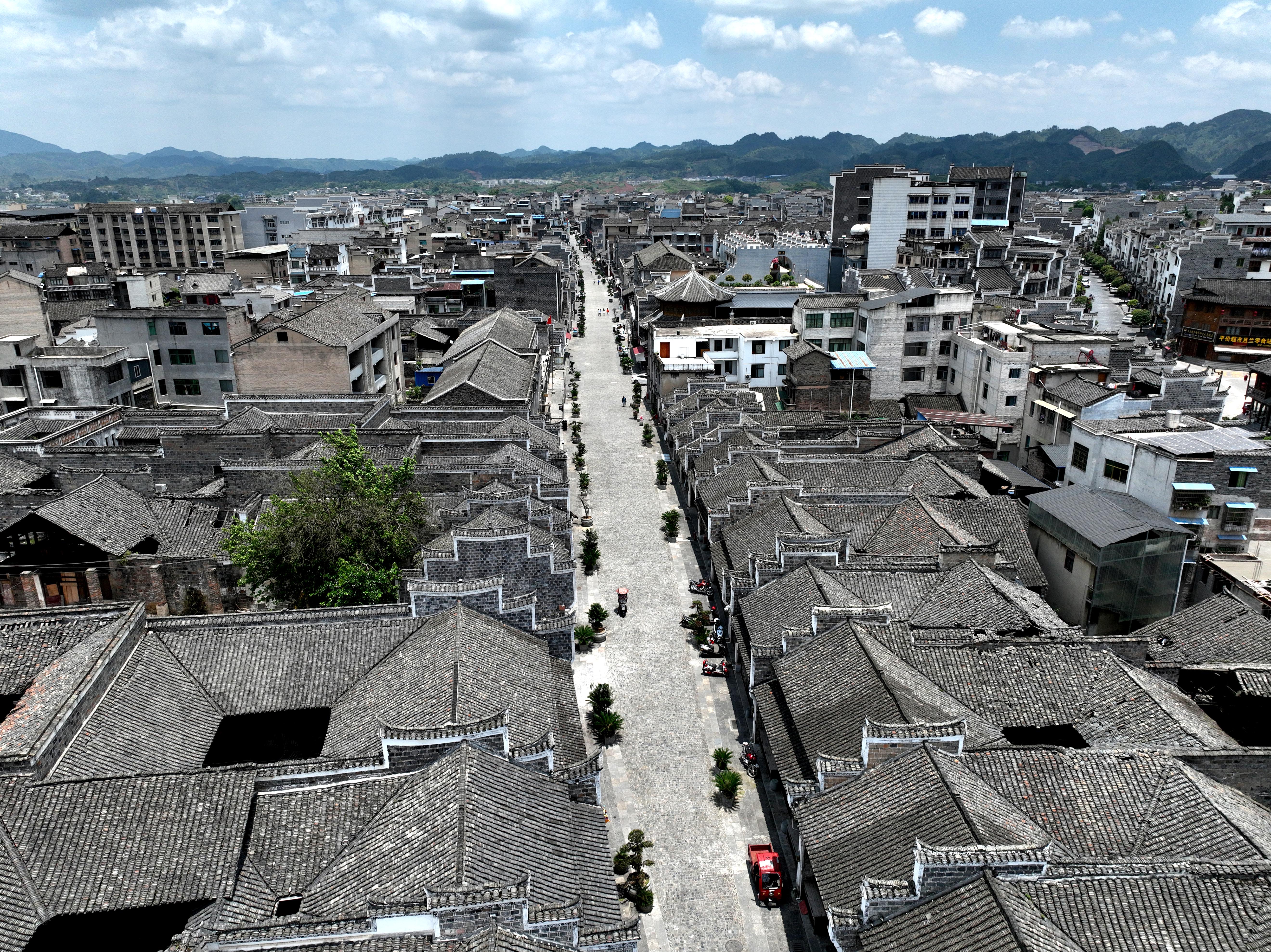 2023年5月27日拍攝的貴州省黃平縣舊州古鎮(zhèn)(無人機照片)。 (寧堅 趙軍)