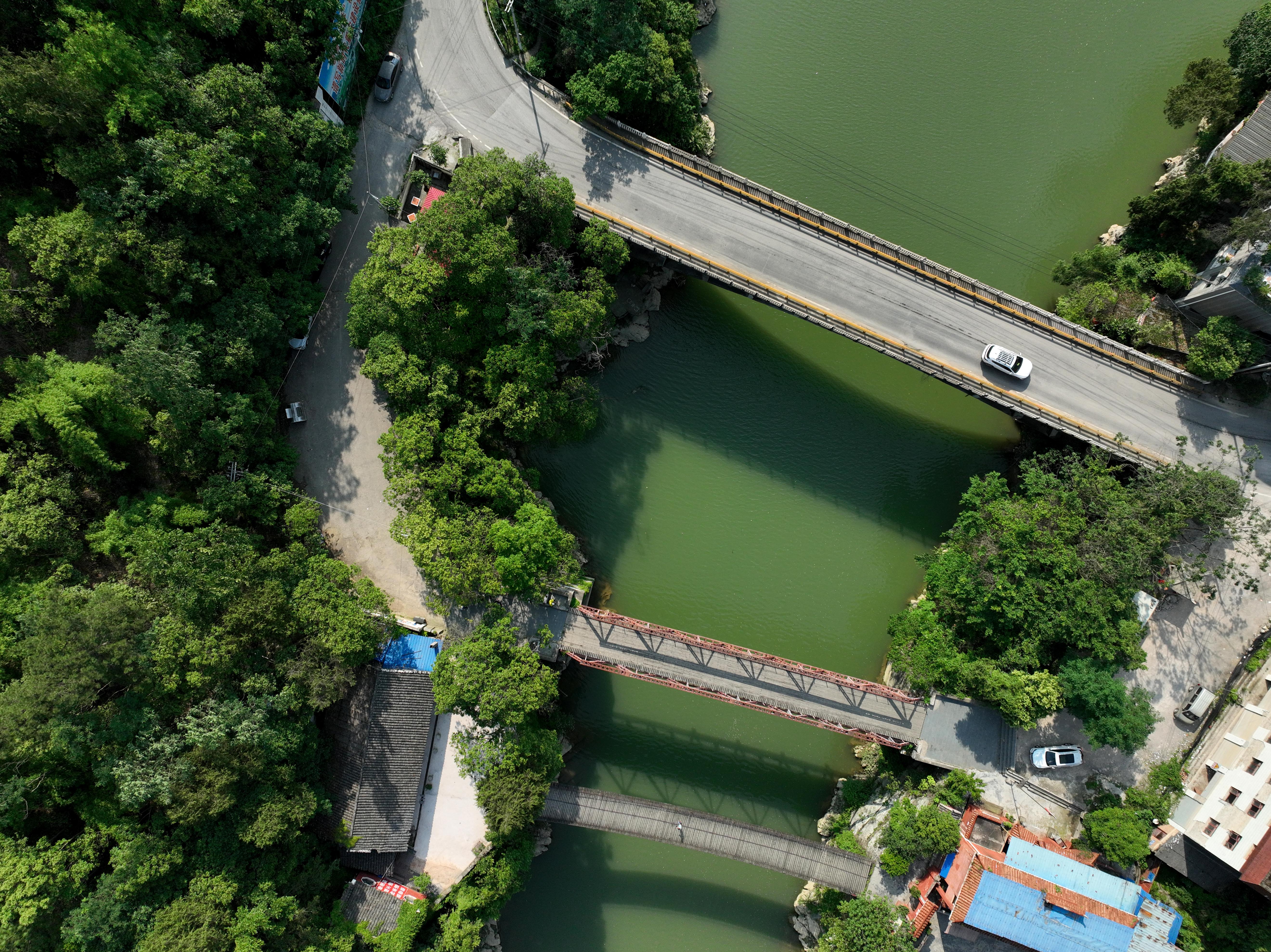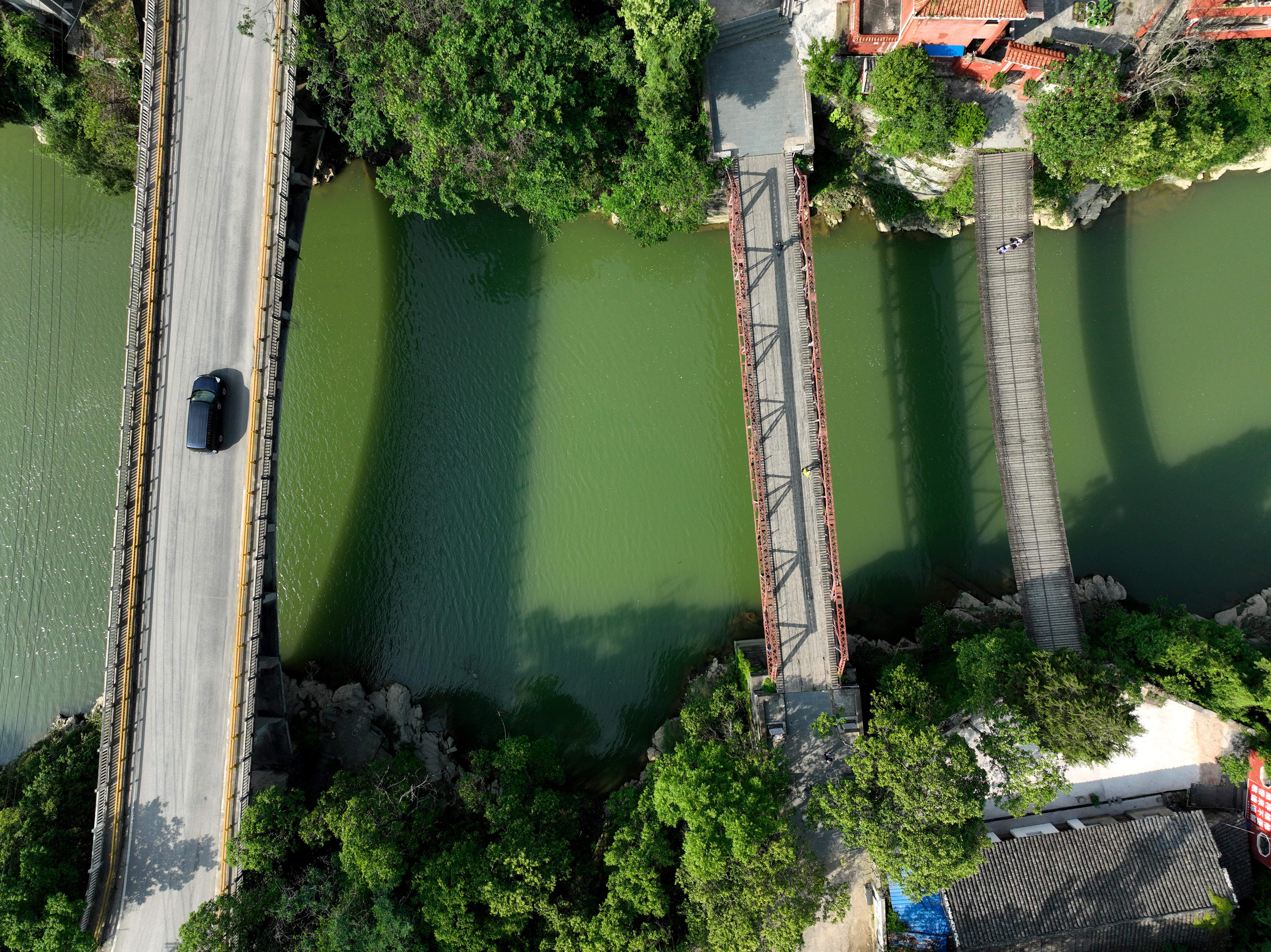 2023年5月27日拍攝的貴州省黃平縣重安鎮(zhèn)“三朝橋”之石墩鋼架橋。 (寧堅(jiān) 趙軍)