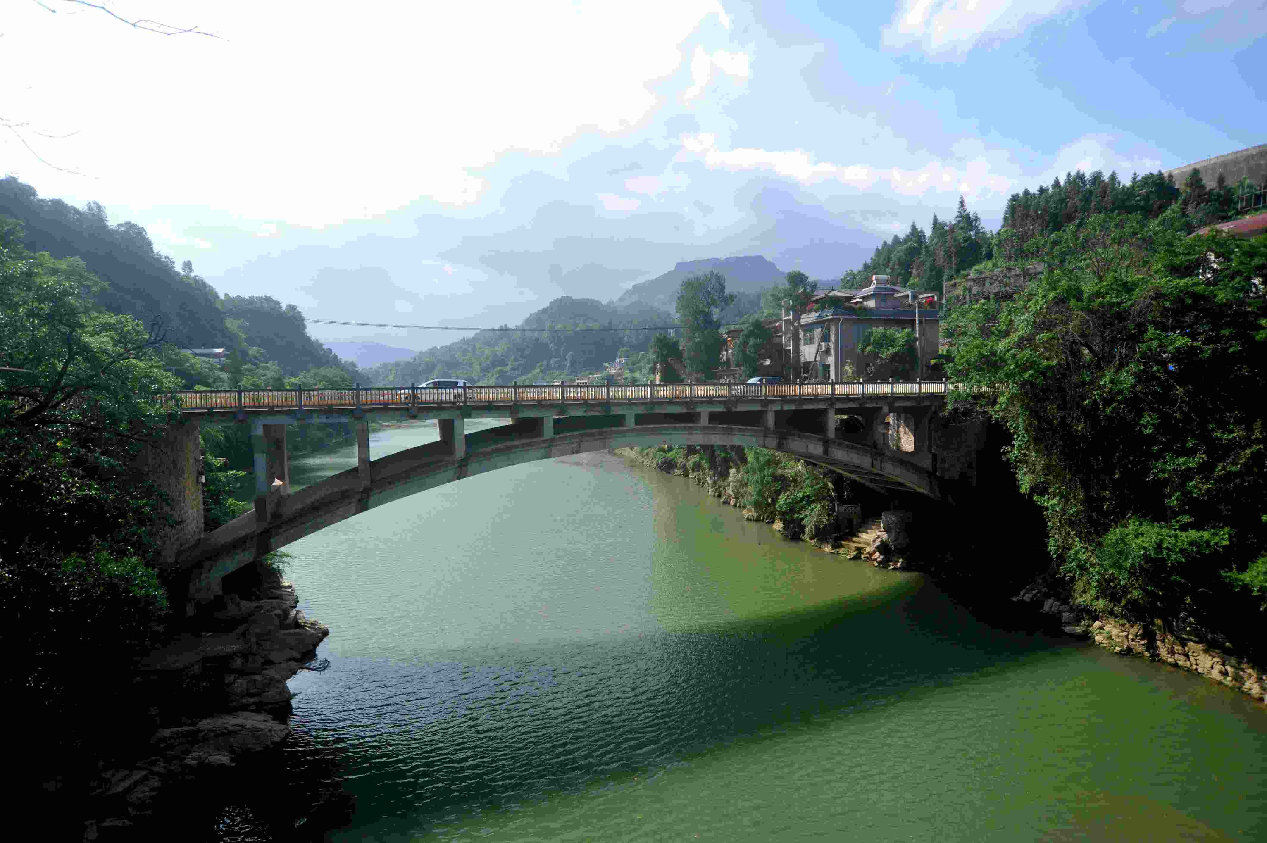 2023年5月27日拍攝的貴州省黃平縣重安鎮(zhèn)“三朝橋”之鋼筋混凝土曲拱橋。 (寧堅(jiān) 趙軍)