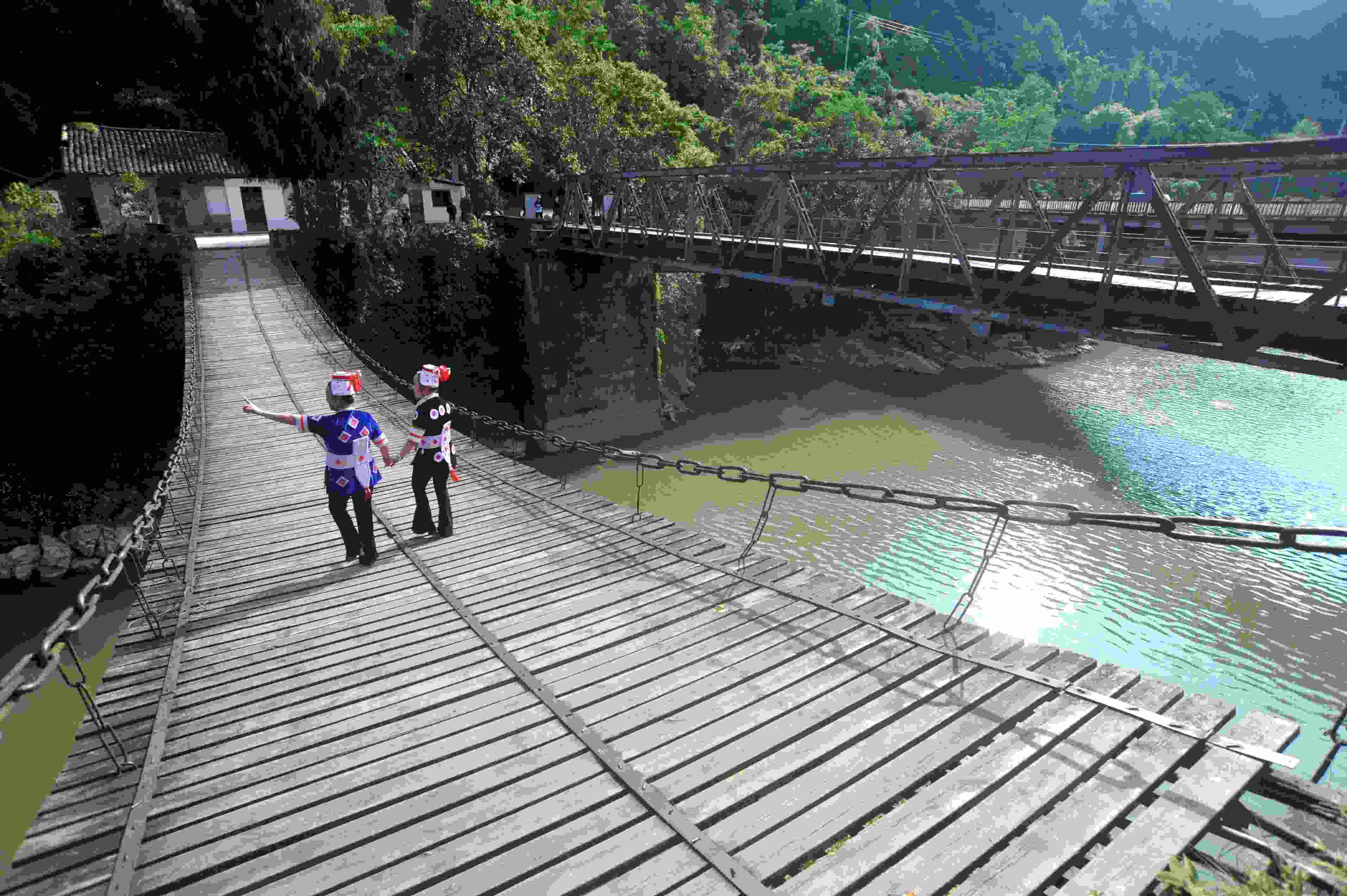 2023年5月27日拍攝的貴州省黃平縣重安鎮(zhèn)“三朝橋”之鐵索橋。 (寧堅(jiān) 趙軍)