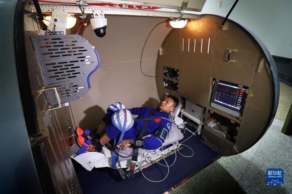 神舟十六號航天員乘組進行醫(yī)學(xué)研究項目操作(2023年3月9日攝)。新華社發(fā)(徐部 攝)