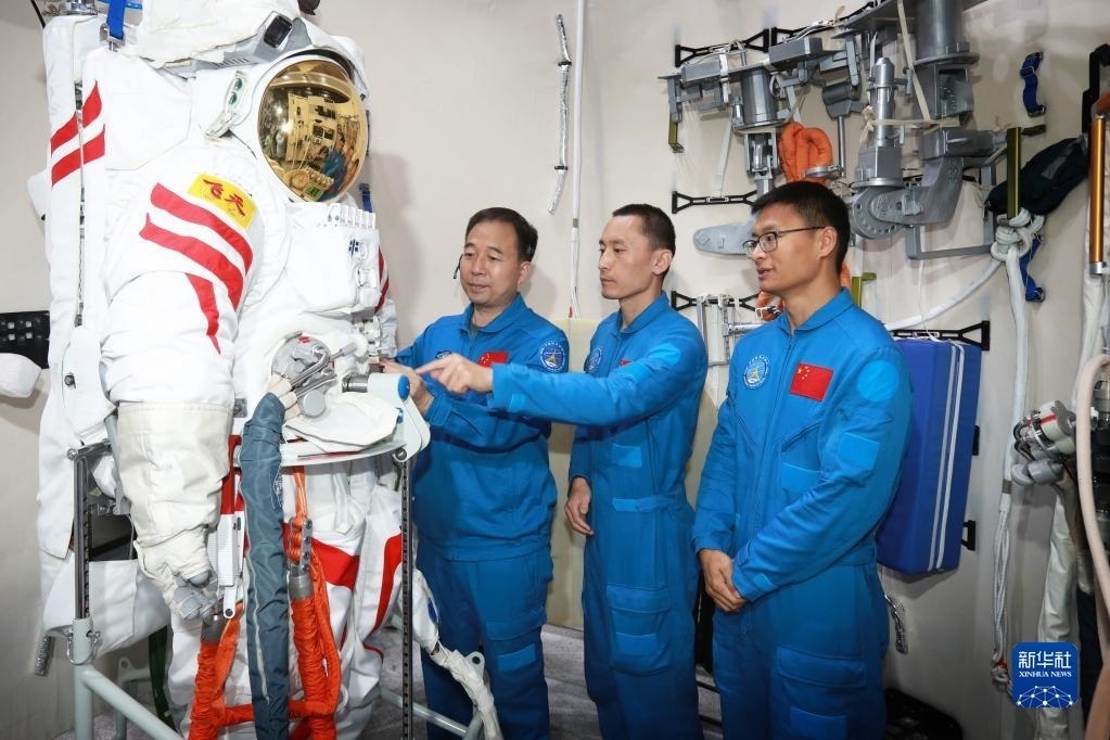 神舟十六號航天員乘組在人船合練中交流(2022年9月23日攝)。新華社發(fā)(徐部 攝)
