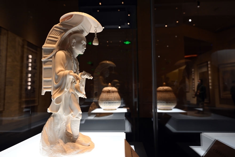 這是在北京中國國家博物館展出的德化白釉玄奘立像(2023年1月8日攝)。新華社記者 金良快 攝